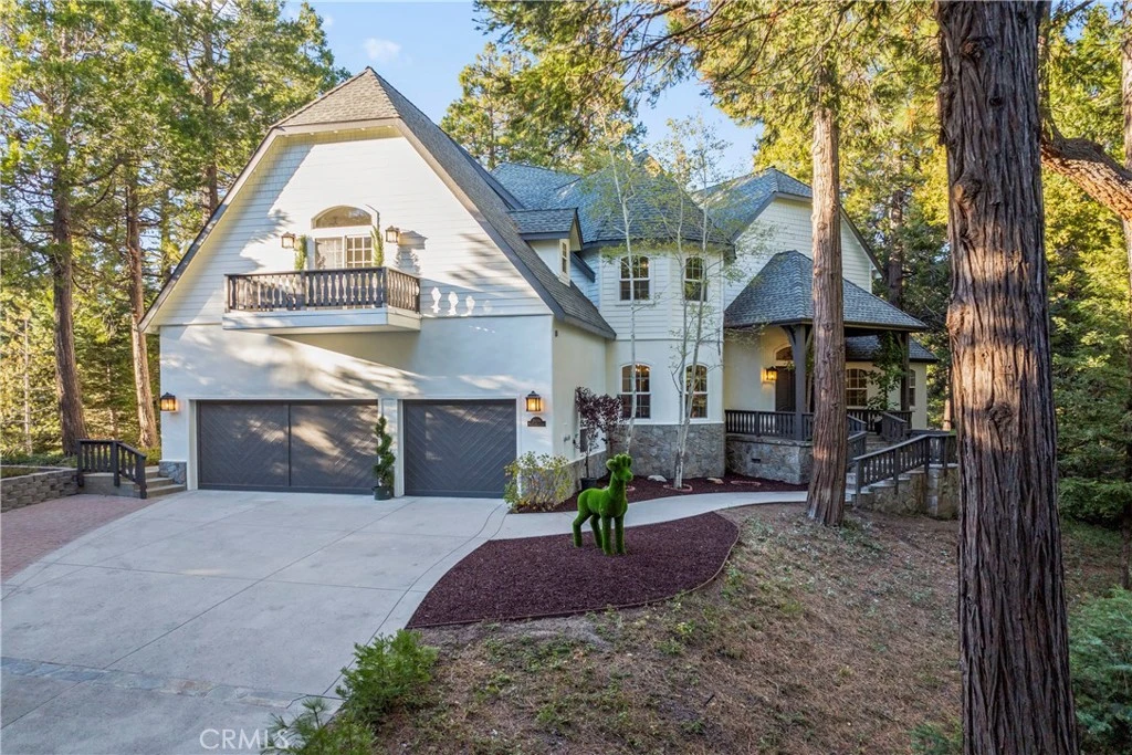Centered on a private 1.05 acre parcel in the prestigious gated community of Cedar Ridge Estates, 29198 Pigeon Hawk offers its residents maximum tranquility within a grove of soaring Cedar trees. Full lake rights to private Lake Arrowhead and custom built in 2002, this manor on the hill boasts 4,102 sq ft, features 4 bedrooms/5 baths. A dramatic grand entrance showcases soaring cathedral ceilings and a flowing main staircase. High quality craftsmanship shown through elegant crown molding, solid core doors, oversized baseboards and solid Oak wood flooring. A formal dining room attaches to a spacious kitchen complete with granite slab counters, a food prepping island, breakfast bar top island, Thermador double oven, and stainless steel appliances. A spacious main living room features a soothing wood burning fireplace incased with rustic dry stack stone masonry. A ¾ bathroom attached to an office(4th bedroom), complete the main living level. Two sliding doors access the impressive, covered slate entertainers patio off the kitchen & living room. Host large family gatherings via two terraced Trex decking areas complete with fire pit and private Gazebo. Upstairs offers the luxurious primary bedroom en suite with two spacious independent double bathrooms, gas fireplace, and private deck overlooking a the grounds. Two more en suite guest bedrooms and a open beamed game room w/ attached children’s play room perfect the upper level. Owners will value an oversized 3 car garage and laundry room which enter directly into the main living level. Professionally decorated and painted inside and out in Summer 2025. 29198 Pigeon Hawk is the ideal location for sophisticated buyers who treasure their privacy yet appreciate the convenience of being less than 10 min to the lake shoreline and Lake Arrowhead Village. Truly a must see setting!