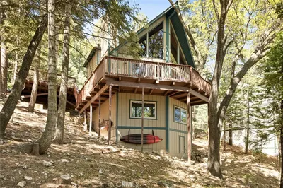 Priced to Sell — Full Lake View Under $700K! Rare opportunity to own a panoramic lake view home with privacy and lake rights, offered with three lots included in the sale. Located in a quiet pocket of Lake Arrowhead with no immediate neighbors on either side, this property offers the rare combination of sweeping sunset views, privacy, and convenience. Enjoy lake views from nearly every room, with expansive vistas of the water and surrounding ridgelines. The main-level deck is perfect for entertaining, with front-row views of Lake Arrowhead’s annual fireworks show right across the bay. This 3-bedroom, 4-bathroom home features en-suite bathrooms in every bedroom, providing comfort and privacy for guests. The home blends mountain charm with modern upgrades, including granite countertops, stainless steel appliances, newer wood laminate flooring, upgraded bathrooms, and fresh interior and exterior paint. Recent improvements include a new roof and ceiling and updated lighting on the top floor. Convenience is key with level-entry access on a paved road, so unloading groceries is easy—no stairs required. The home also offers parking for up to five vehicles, including a parking deck and additional spaces near the home. The third lot on Palisades Drive provides limited lake rights, including: access to private beaches, lake trails, and dock rental opportunities. Additional highlights include: Sold fully furnished (with a few exclusions); Turnkey short-term rental friendly (Airbnb/VRBO); Fireplace for cozy winter evenings; 3-minute drive to Lake Arrowhead Villag; 5-minute drive to SkyPark at Santa’s Village; Includes deck furniture, fire pit, heaters, BBQ, kayaks, and paddleboard.