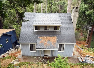 Sunny Craftsman bungalow circa 1946 thoughtfully designed and sited in a serene pocket of Lake Arrowhead. This storybook charmer holds a graceful balance of original character and modern updates for easy living. The entryway path leads into a newly renovated kitchen and lovely dining space. Stone floors and updated appliances and finishes are complimented by vintage details such as original lighting and authentic wood paneling. A charming dinette completes the space. Wood beamed ceilings throughout the home adds depth, enhancing the overall aesthetic. The living room brings the outdoors in with floor to ceiling metal and glass sliders, ample light and tree views. The main living space is mindfully adorned with a cozy fireplace for cool nights. Upstairs, find a primary bedroom with combed mahogany walls, original stained glass windows and sky-lights with verdant views of the surrounding trees. Adjacent is a freshly updated bath with walk in shower and bench seat. The expansive newly built back deck is pouring with sunlight, perfect for lounging or entertaining.Tucked into a unique enclave of the Arrowhead Villas, this authentic cottage u a perfect Lake Arrowhead retreat with great indoor-outdoor flow. A parcel with lake rights is available for additional money.