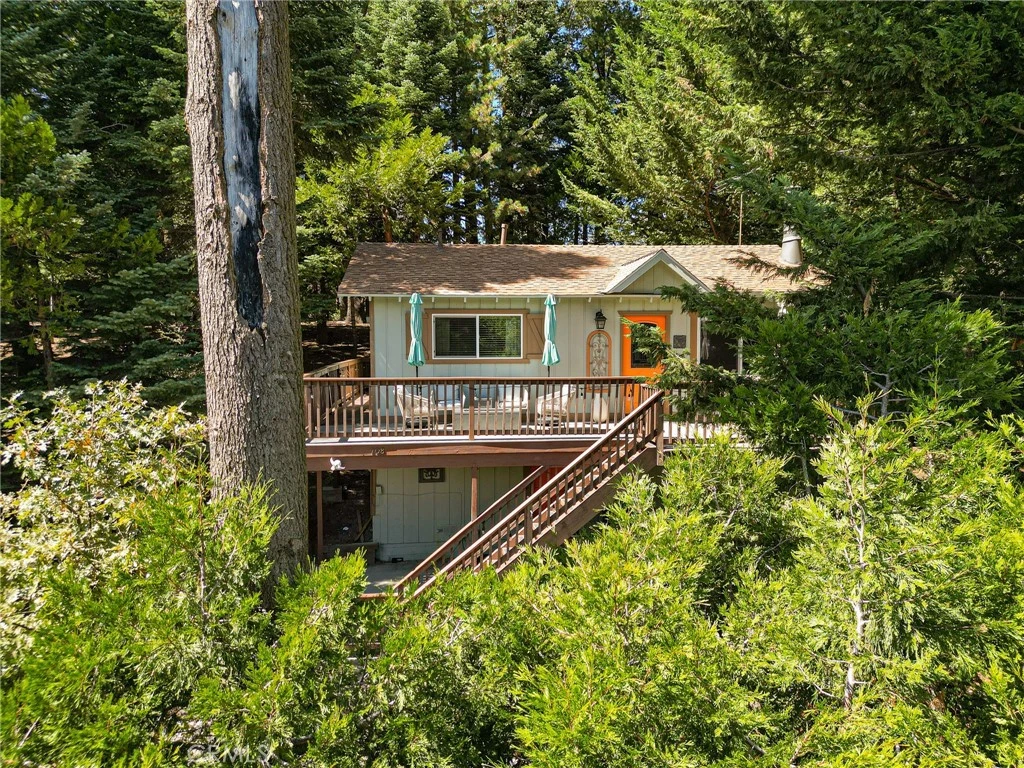 Escape to your very own mountain treehouse! This all one level living is in great shape and shows pride of ownership. Tucked in the trees you'll find a sense of privacy and solace here. The adjacent lot is included in the sale and really helps add extra privacy and charm to the setting. Once you make your way to the front door, you'll find 2 bedrooms and 1 bath all on the same level. When you escape out back there is a near full wrap around deck that allows you access to the back yard area where you can admire the mountain setting, trees and views. The current owners updated the main front deck with Fiberon composite decking, ridgecaps and H20 heater. The build up is large and should not be missed. In there you will find the laundry area and ample room for storage. There is even a full house AC unit. Located in Arrowhead Villas, and close to HWY 18 and the Lake Arrowhead Village. This has been a well running STR, has lots of parking, and the home comes mostly furnished minus sellers exclusions. Do not miss this one, it won't last long.