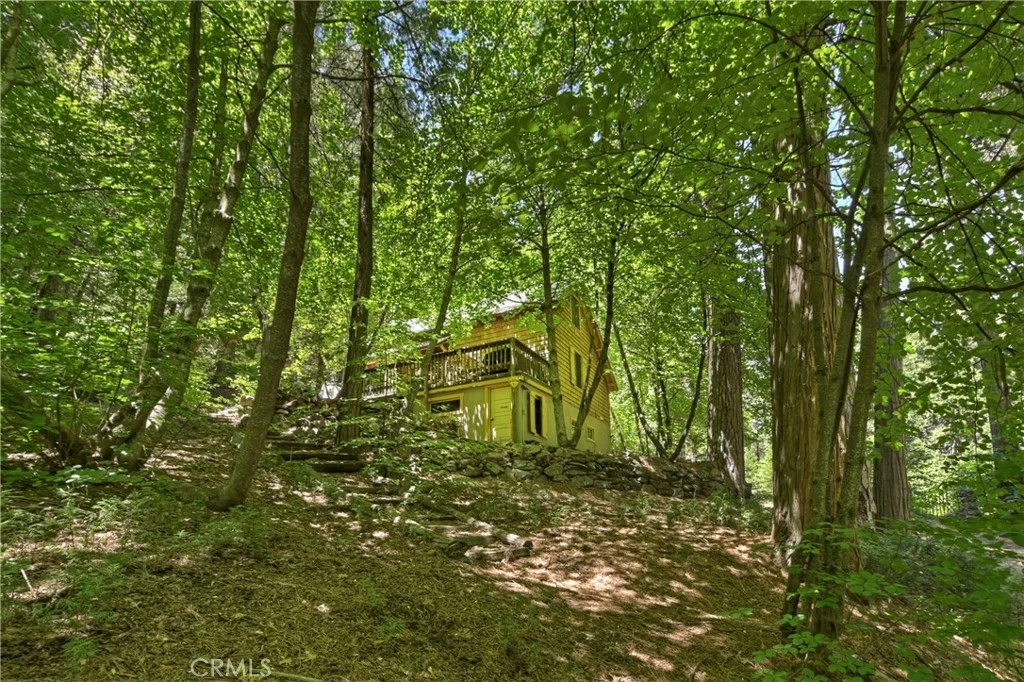 We call it Creek Side Cottage because you cross over the stream, on a bridge and it's right there. This Vintage cottage with original latch windows, wood floors vaulted open beamed ceiling and a real granite fireplace is currently being used as a writer's retreat, in that it is quiet and secluded. It's located in the highly coveted, gated community of Dogwood Blue Jay cyn, just minutes from the town of Blue Jay. The area is rare with a HOA that has its own wells and water system. 160 acres of green belt meanders around each property, providing a private forest feeling. _____________________________________________________________________________________