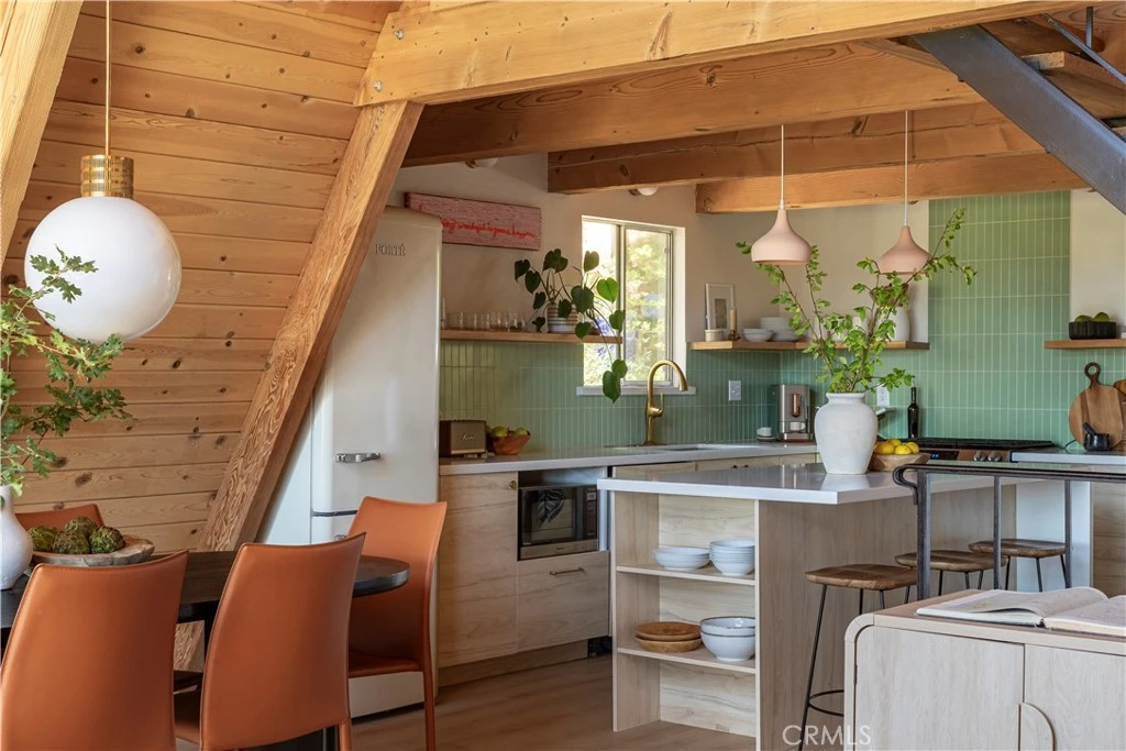 The A-Frame everyone’s been looking for... With panoramic views, a wall of glass, and a fresh interior update, 842 Nadelhorn checks all the boxes for a true mountain escape. Set above Lake Arrowhead and surrounded by towering pines, this three level home was thoughtfully remodeled in 2023 with clean finishes and a layout that makes the most of the setting. On the main level, you’ll find cathedral ceilings, a cozy wood burning fireplace, and open living that flows out to a wraparound deck, perfect for grilling, lounging, or enjoying the treetop and peekaboo lake views. The kitchen was refreshed with new cabinetry, tile, appliances, and plumbing. A bedroom and full bath on this level make for easy, no stairs access. Upstairs is a private loft style ensuite with a tucked away desk area and some of the best ridgeline views in the house. The lower level adds even more space, with a second living area, a bunk room with arcade games, another bedroom, full bath, laundry, and a seperate entrance that leads to a private side yard and hot tub, the ideal spot to unwind under the stars. The design blends warm earthy tones with a touch of mid century modern, perfectly suited to its mountain setting. Whether you’re cozying up by the fire or heading out to explore, this home blends comfort and style in all the right ways. Currently a successful short term rental with Airbnb’s “Designer” status, with lake rights included and just minutes from the Village, trails, and more, this is the A-Frame you don’t want to miss.