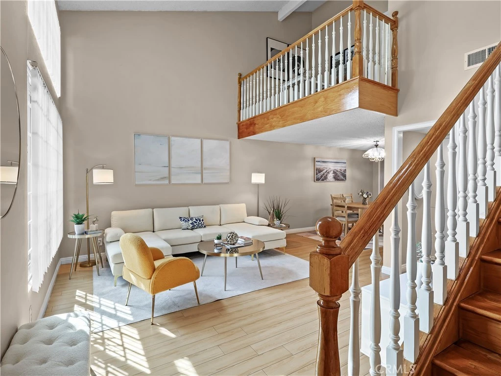 This stunning 1-Bed + Loft, 1.5-Bath, 930 Sq. Ft. corner-unit townhouse features a versatile loft ideal for a home office, soaring two-story ceilings in the living room, a primary suite with vaulted ceilings, a cozy fireplace, a walk-in closet and an ensuite bath. Additional highlights include a half bath downstairs, side-by-side laundry upstairs, a private one-car garage with storage and a large patio—perfect for indoor-outdoor living and entertaining. A landscaped front yard and newly painted walkway lead directly from the street to the front door, opening into a spacious living room with tall ceilings and two sets of large windows extending from floor to ceiling, creating a grand sense of openness. A beautifully crafted staircase with wood banisters extends and wraps around the loft, adding to the open feel. The formal dining area features a wall-to-wall sliding door to the patio, comfortably fitting a large table for gatherings. The updated kitchen offers granite countertops, ample cabinetry with pullout drawers, recessed lighting, tiled flooring, stainless steel appliances and another sliding door to the patio. A hallway closet and half bath with extra storage complete the first floor. Upstairs, the layout is designed for comfort, featuring a laundry closet with a side-by-side washer and dryer, a linen closet, a private balcony overlooking lush grounds, a spacious loft offering additional space and a bright bedroom with room for a sitting area. Quiet unit with double-paned windows, laminate floors and central air and heat. The gated, beautifully maintained complex offers an inviting pool and heated spa in a park-like setting. Nearby Lake Balboa Park, golf courses and an off-leash dog park provide endless outdoor activities. Easy access to the 101 and 405 FWYs, plus the Balboa Station for the Metro Busway. Experience the perfect blend of indoor-outdoor living in style at this suburban oasis. Schedule your showing today!
