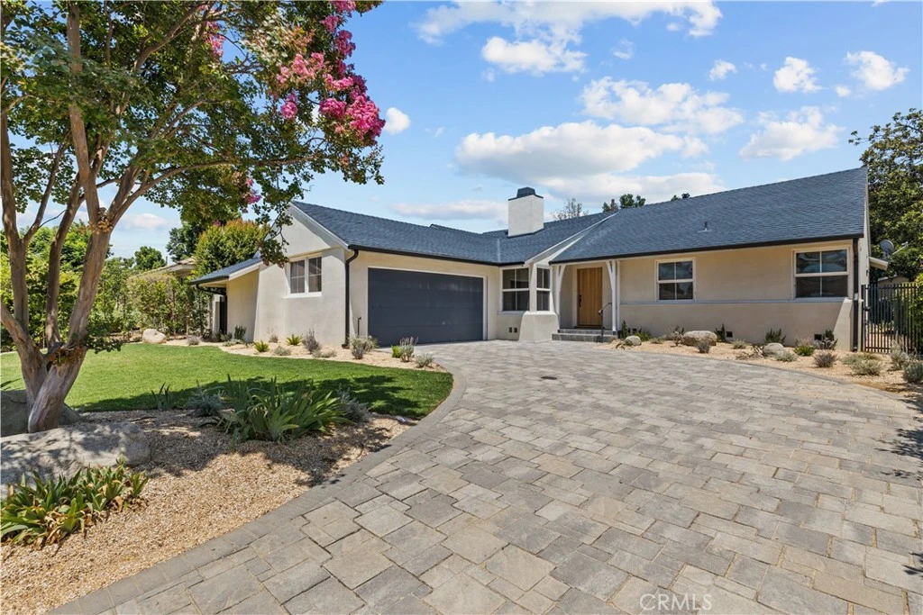 A beautifully reimagined blend of modern design and classic ranch charm, this fully remodeled 4-bedroom, 2-bathroom home is located in a quiet, tree-lined pocket of Lake Balboa. Originally built in 1956 and thoughtfully transformed, the home now offers a bright, open layout with stylish finishes and a seamless indoor-outdoor flow. The spacious living room is anchored by a sleek double-sided fireplace and opens to the dining area and a newly updated kitchen featuring custom cabinetry, quartz countertops, and stainless steel appliances. French doors lead to a generous covered patio and expansive grassy yard—perfect for entertaining or relaxing in the California sun. The versatile floor plan includes a dedicated den or flex space with built-ins, and the expanded 2-car garage, once used as an artist’s studio, offers incredible natural light with its north-facing skylights—ideal for creative work, a gym, or ADU potential. Set on a generous lot in a sought-after neighborhood close to parks, schools, and freeways, this home is the perfect balance of style, function, and location.