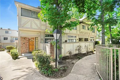 Step into a truly one-of-a-kind Mediterranean Revival–inspired Lake Balboa residence where timeless design, generous scale, and architectural character come together. Ideally positioned as an end unit near the back of the complex, this home enjoys a quiet, private setting within the community. This expansive condominium offers beautifully preserved living space rich with old world charm and thoughtful design details. Dramatic brick archways, warm wood accents, vaulted ceilings with exposed beams, and a sunken living room create a distinctive, villa-like ambiance ideal for both everyday living and entertaining. The thoughtfully designed floor plan offers excellent separation of spaces, multiple living areas, and abundant storage throughout. The kitchen is complemented by a dedicated dining area and a charming breakfast nook featuring beautiful built-in cabinetry, as well as a wet bar conveniently located just off the kitchen—perfect for entertaining and everyday use. Both bedrooms are generously sized and feature full ensuite bathrooms, offering comfort and privacy. The primary suite is a true retreat, complete with a unique loft-style interior workspace overlooking the main bedroom area—ideal for a private office, reading nook, or creative studio—along with a spacious ensuite bath featuring dual sinks and well-preserved original finishes. A powder room is conveniently located on the main living level, and the upstairs laundry room includes a full-size washer and dryer. The home also features a direct-access two-car garage and has been meticulously maintained, showcasing original finishes that reflect classic Mediterranean-inspired design while offering an exceptional opportunity for a buyer to personalize or thoughtfully modernize over time. An inviting home with presence, personality, and enduring appeal—perfect for buyers who appreciate character, craftsmanship, and generous interior proportions.