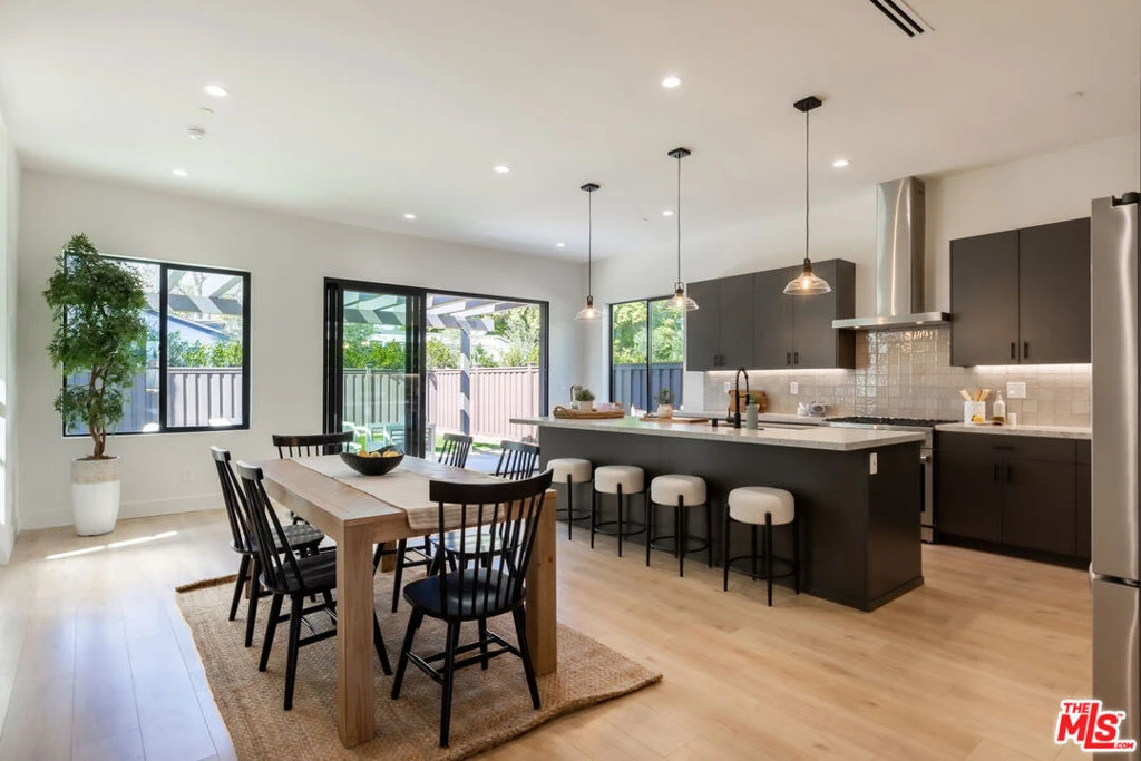 Gorgeous New Construction in Lake Balboa | Thoughtful, Elegant, and Sophisticated. Situated in a charming cul-de-sac, this remarkable new farmhouse-style home features a beautiful board and batten exterior, blending modern elegance with timeless appeal. High ceilings soar overhead on both levels, flooding the space with light and creating an airy, expansive feel. Every detail has been carefully considered, from the striking built-ins to the sleek stainless-steel appliances, stylish light fixtures, and the drought-tolerant landscaping that makes maintenance a breeze. The heart of the home? A chef's dream kitchen! With a massive island, walk-in pantry, stunning counters and backsplash, and endless storage, it's built for everything from casual breakfasts to lively dinner parties. It opens effortlessly to the living and dining areas, with views that extend straight to the veranda-covered backyard, perfect for alfresco dining or relaxing in the shade. Upstairs, the primary suite is *pure magic*, a luxurious retreat with DUAL walk-in closets and a spa-like bathroom featuring double sinks, and truly exquisite finishes. Just outside the primary, a spacious den/creative space offers endless possibilities -- a home office, lounge, or family room, you decide! Downstairs, two generous bedrooms share a beautifully appointed bathroom with dual sinks and resplendent hardware and tilework. A powder room for guests with the most fabulous wallpaper, central heat/air, and a fully enclosed and abundant backyard round out the home's incredible features. Adding to its modern conveniences, the home is equipped with solar panels (fully paid off) on the roof, promoting energy efficiency and sustainability. The attached two-car garage features a 220V EV charger, perfect for electric vehicle owners. Inside the home, fire sprinklers throughout provide an extra layer of safety and peace of mind. With high-end touches throughout, this is more than a house, it's a well-designed lifestyle. Don't miss this opportunity to be the first to call this high-quality, new construction home your own.