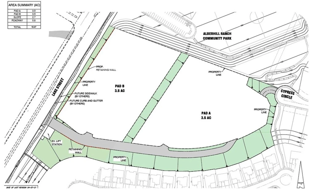 Alberhill Court which consists of 10.47 gross acres designated for high-density / multi-family zoning (up to 207 units). The site is primarily envisioned for garden-style walk-up apartments, with alternative potential uses including townhomes or duplex/triplex configurations.