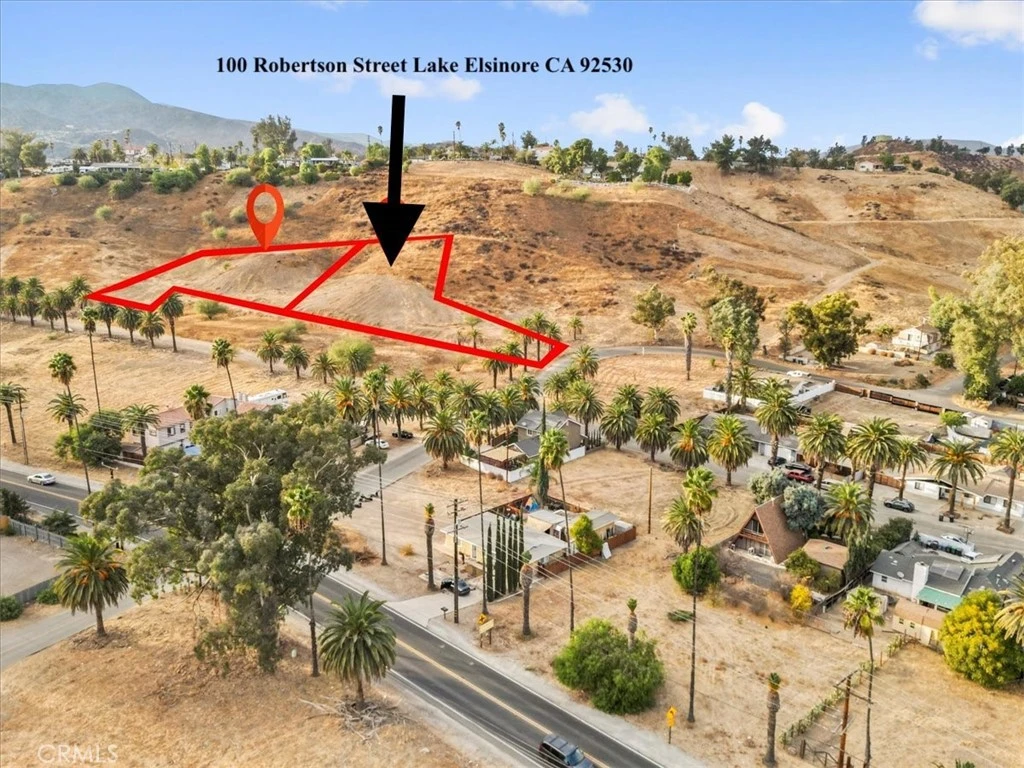 Nestled in the vibrant city of Lake Elsinore, in the heart of Southwest Riverside Count. 100 Robertson Street Lake Elsinore CA 92530 offers a rare opportunity to own 42,689 square feet. 0.98 Acres of prime vacant land. Positioned on Robertson Street, this parcel is one of the last remaining large buildable lots in a flourishing family-friendly neighborhood. The property boasts RH (Residential Hillside) zoning, which is perfectly suited for custom-built homes or manufactured residences. Utilities are conveniently accessible in the street, simplifying the development process. Recorded easements along the back and side boundaries still leave ample space for a substantial building site, allowing for versatility and potential. Strategically located off Highway 7, this property provides seamless connectivity to the I-15 freeway, acting as a gateway to the area’s numerous amenities and attractions. Situated within a dynamic community experiencing ongoing development, this location offers an ideal setting for both residential and investment purposes. Lake Elsinore, Southern California’s largest natural freshwater lake, is a short distance away, From boating and fishing to water skiing, the lake promises endless fun for families and water sports enthusiasts. A nearby marina off Riverside Drive provides easy access to the lake, ensuring that aquatic adventures are always within reach. Additional recreational options include proximity to a baseball stadium, a motorcycle park, and a local airport. The property’s convenience extends to essential amenities, with schools, churches, and service providers located nearby. Shopping and dining options abound, with modern shopping centers, the Lake Elsinore Outlets, and Historic Downtown offering everything from everyday necessities to charming local experiences. Highway 74 ensures easy travel to nearby cities and attractions, while the scenic Ortega Highway provides a direct route to San Juan Capistrano and coastal destinations. Centrally located, this property offers unparalleled access to San Diego, Riverside, San Bernardino, Orange, and Los Angeles counties, making it a strategic hub for work and leisure.