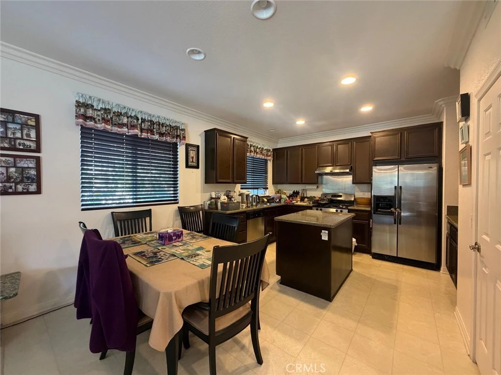 Welcome to this spacious two-story home offering 5 bedrooms, 3 bathrooms, and 2,499 sq ft of open living space on a generous 10,019 sq ft lot. Set along a gently elevated street in a quiet slope area overlooking Lake Elsinore, this home enjoys a peaceful setting with scenic surroundings. Inside, the bedrooms feature comfortable carpeted flooring, while the kitchen and dining areas showcase durable square-tile floors. The kitchen is highlighted by recessed lighting, granite countertops, and a functional center island, creating a bright and practical space for cooking and gathering. The open living area includes a cozy fireplace and flows seamlessly into the kitchen and dining spaces for easy everyday living. Step outside to a beautiful, park-like backyard filled with mature plants and greenery, offering a tranquil outdoor retreat that feels like a private garden. With its spacious layout, elevated location, and serene outdoor environment, this home provides comfort, space, and natural beauty in one place.