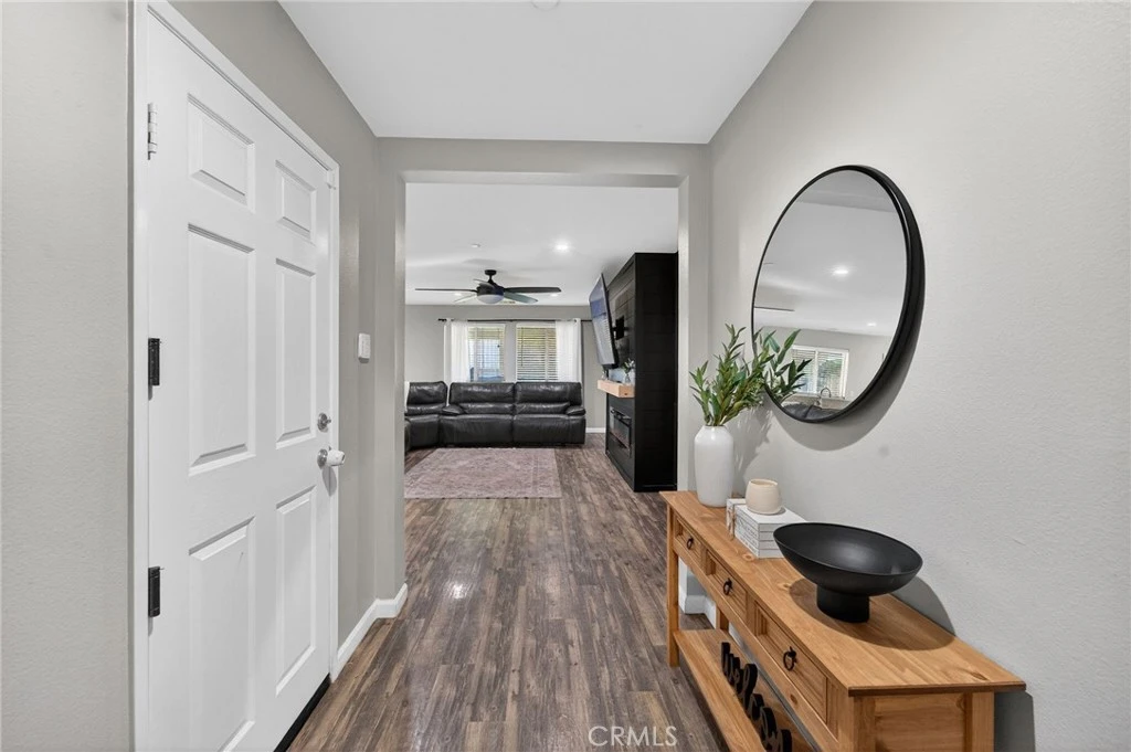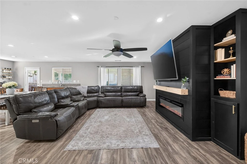 Beautifully updated single-level 4-bedroom, 2-bath home in the desirable Canyon Hills community featuring an open floor plan and modern finishes throughout. Interior upgrades include fresh paint, updated flooring, renovated bathrooms, and a custom built-in with electric fireplace insert. The spacious pool-sized backyard is perfect for entertaining with an oversized vinyl patio cover spanning the length of the home, complete with ceiling fans. Low-maintenance artificial turf in both the front and back yards along with drought-tolerant landscaping. Conveniently located near Canyon Hills Sports Park, community pool, and neighborhood amenities.