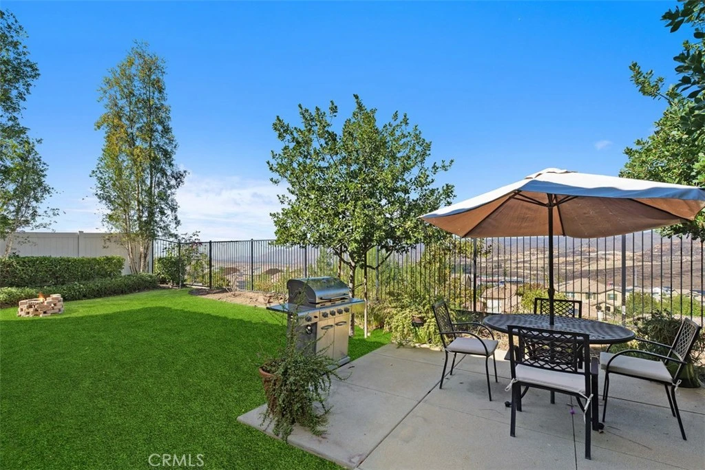 This stunning former model home in Amberhill Ranch offers panoramic mountain views from its elevated 5,663 sq ft lot and features five spacious bedrooms, (including a main-floor suite), plus a versatile upstairs loft. The formal dining room has a butler's pantry and flows seamlessly into a gourmet kitchen equipped with rich wood cabinetry, wood floors, granite countertops, stainless steel appliances, a large island, and abundant storage. The great-room style family room boasts surround sound, a cozy fireplace, and breathtaking views. The nearby main floor bedroom with en-suite bathroom is great for guests. Upstairs, the luxurious upstairs primary suite includes crown molding, built-in speakers, and a spa-like bathroom with travertine floors, dual sinks, a soaking tub, separate shower, and oversized walk-in closet. Additional highlights upstairs include the large bonus room/loft, three additional bedrooms, dual-sink bathroom, an upstairs laundry room, whole-house fan, and dual-zoned A/C. The flat, usable backyard offers privacy, breezes, and space for a pool or play area. 3 car tandum garage offers convenient space options. Located within walking distance to a new elementary school and resort-style HOA amenities including a pool, splash zone, clubhouse, and parks, this home is just minutes from the I-15 freeway, Lake Elsinore Outlets, and the lake, plus offers easy access to Corona, 25 min to Temecula and 50 min to Orange County. This property is the perfect place to call home.