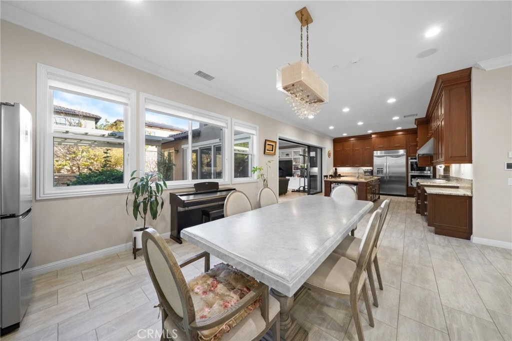 Welcome to your dream home in the highly desirable Baker Ranch community Built by Luxury home builder Toll Brother. Stunning Home with Casita floor plan at Baker Ranch! Gorgeous 5 private Suites Two - story single family Home. This luxurious open-concept home has 5 bedrooms and 5.5 bathrooms. Inviting entry leads to dramatic two-story foyer with double door entrance and delightful curved staircase with overlook. The California Room has been thoughtfully upgraded and enclosed with sliding doors, creating an extended living area beyond the original 3,053 sq.ft. This enhanced space includes a comfortable lounge with a sofa and TV, along with space for exercise equipment—offering exceptional versatility for relaxation, entertainment, or fitness. One of the five bedroom suites is located downstairs with its own private entrance - perfect for guests, in-laws,or a secluded home office.Splendid master bedroom with tray ceiling features an array of windows, walk-in closets, as well as luxurious master bath that includes soaking tub, dual vanities, and separate shower with seat. Appealing great room is ideal for entertaining and is open to both the dining room and kitchen that includes an island breakfast bar, walk-in pantry, and easy access to the luxury living space. Additional highlights are private baths for each bedroom, secluded casita, convenient upstairs laundry, a built in surround sound system in 3 rooms (living room, master bedroom and 1st room upstairs). The Master suite has also been enhanced with an enclosed deck, seamlessly connected to the room and ideal for a morning coffee nook, reading lounge, or a private exercise space. Also include solar panels that are already paid off. Community amenities such as parks, pools and walking trails. Imagine living a life of convenience, quiet comfort and refined elegance!