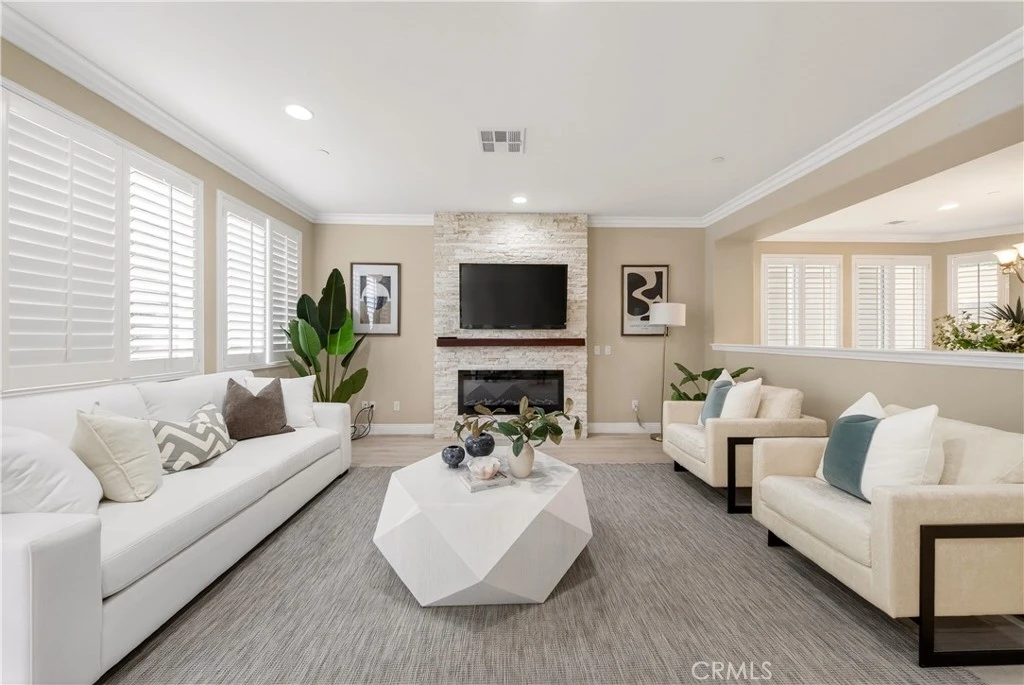 Welcome to this stunning home in the highly sought-after Whisler Ridge community of Lake Forest, ideally located next to the beautiful Lake Forest Sports Park. Boasting over 3,300 sq ft of living space, this spacious 5-bedroom, 4-bathroom single-family residence offers one of the most desirable floor plans in the neighborhood. The thoughtfully designed layout features a convenient downstairs bedroom with a full bath — perfect for guests or multi-generational living. The open-concept main floor showcases a bright and airy living space with a cozy fireplace, expansive dining area, and a chef-inspired kitchen complete with a large pantry and generous storage. The seamless flow makes it ideal for both everyday living and entertaining. Step outside to a large private backyard surrounded by tall, mature trees, offering exceptional privacy and a peaceful setting for relaxation or gatherings. Upstairs, you’ll find a spacious loft — perfect as a second living area, home office, or playroom. The luxurious primary suite features a spa-like ensuite bathroom and a large walk-in closet. An additional bedroom enjoys its own ensuite bath, while two more generously sized bedrooms share a full bathroom, providing comfort and flexibility for the entire family. Enjoy the benefits of low HOA, low tax rate, and no Mello-Roos, all within the highly regarded Saddleback Valley Unified School District. Conveniently located just minutes from Foothill Ranch Towne Center, as well as Walmart, Target, and Ralphs, this home offers the perfect balance of privacy, space, and everyday convenience. A rare opportunity to own a beautifully appointed home in one of Lake Forest’s most desirable communities!