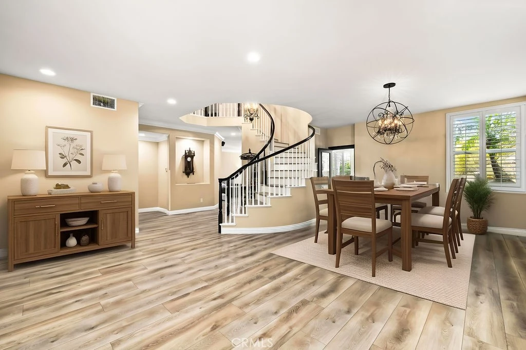 This spectacular home is nestled on a quiet cul-de-sac street in the desirable hillside community of Foothill Ranch. Situated on a private, tree-lined corner lot, this one-of-a-kind expanded CUSTOM home blends sophistication, thoughtful design, and pride of ownership. Built upon the popular Lyon Heights floor plan and expanded by approximately 500 sq ft, this beautifully redesigned home offers over 3,400 sq ft of refined living space. With 6 beds, 3 full baths, and a spacious loft, there is room for everyone to live, work, and gather comfortably. Designed with accessibility in mind, the home features a private wheelchair-accessible elevator- ideal for multi-generational living and convenience. An inviting entry welcomes you through a wrought-iron gate and custom double doors to a grand foyer highlighted by an elegant formal living and dining room. At the heart of the home is the fully reimagined Chef’s Kitchen featuring granite counters, Samsung Bespoke Stainless appliances, an expanded center island, pantry, and charming breakfast nook with built-in seating. The adjacent family room is perfect for everyday living, offering built-ins, surround sound, and a cozy fireplace as its focal point. A private downstairs bedroom with a remodeled bath provides ideal accommodations for guests. The Primary suite showcases vaulted ceilings, a walk-in closet, and a spa-inspired bath with granite topped dual vanity, soaking tub, and a walk-in shower. 4 Additional bedrooms, a full bath, and a versatile loft- perfect as a home office, study zone, or secondary living space- complete the upper level. Step outside to the expansive, tree-lined wraparound yard with ample space for a pool, the perfect setting to relax, entertain, or create your outdoor retreat. Boasting over $600,000 in PREMIUM UPGRADES that include: FULL PEX RE-PIPE, New HVAC System w/Medical-Grade air filtration & New Ducting, QuietCool Attic fan, Milgard WINDOWS, Tankless Water Heater, Whole-house water purification, 33 SOLAR PANELS w/ 2 Solar backup batteries, New 200-amp electrical panel, new recessed lighting, Alarm system, exterior drainage system, Vinyl flooring, Insulated garage doors/overhead storage racks, Patio Cover and turf. Foothill amenities include community pool, spa, tennis, parks, sports courts, hiking/biking in nearby Whiting Ranch. Located near shopping, dining, and toll road access, this is a rare opportunity to own a turn-key home in one of Foothill Ranch’s most sought-after neighborhoods.