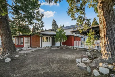 Searching for a hillside retreat with breathtaking mountain views and opportunity for expansion? Overlooking Burns Canyon and surrounded by trees, this 2-bed, 2-bath home comes with 2 additional residential parcels, giving you over half an acre of possibilities! A paver driveway slopes gently down to a pergola-topped patio, setting a welcoming tone from the start. Your living room shines with soaring beamed ceilings, timber wainscoting, and a wood-burning stove that brings warmth to any gathering. A picture window illuminates the interior, while glass sliders lead out to the elevated deck where you can soak in sweeping vistas of the Sierra Pelona Mountains. The primary bedroom features an ensuite for added ease. Your gated backyard is ideal for weekend grilling or simply unwinding amid nature, while an attached 2-car garage provides functionality. Just minutes from Elizabeth Lake, The Salt Lick Tavern, and Hwy 14, this Lake Hughes haven is waiting for you to unlock its full potential!