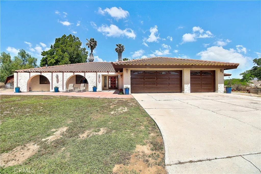 Nestled near serene Lake Mathews, this stunning single-story home boasts four spacious bedrooms and three modern bathrooms. The expansive, light-filled living areas provide a welcoming atmosphere, while a versatile bonus room offers the perfect space for a gym, den or 5th bedroom. Set on a generous 2.28-acre completely crossed-fenced lot. This property features a main entrance with an automatic gate and a secondary entrance with a manual gate, ideal for trailer access. Embrace the eco-friendly lifestyle with 44 solar panels, 2 inverters, and an impressive 10 kw of fully PAID FOR solar energy. The gourmet kitchen is a chef's dream, showcasing exquisite cherry cabinets and a premium VIKING stove. Unique in the neighborhood, this home benefits from being connected to natural gas. Relax on one of the two large redwood decks perfectly placed on the property or unwind under the magnificent covered patio, taking in the breathtaking views. Cool off in the saltwater pool or soak your troubles away in the jacuzzi. Kids can also play and enjoy time outside on the playground equipment. Additionally, all windows and sliders, except for the fixed pane windows, have been replaced with new energy-efficient models. This property also includes three separate workshops/outbuildings (12’x20’, 12’x18’, and 12’x24’), offering ample storage and a designated workshop area. This home has been well maintained and updated over the years - just to name a few are: new flooring, new tile, fresh paint inside and out, new tankless water heaters, garage doors the list is extremely long. Don’t miss out on the opportunity to make this property yours.