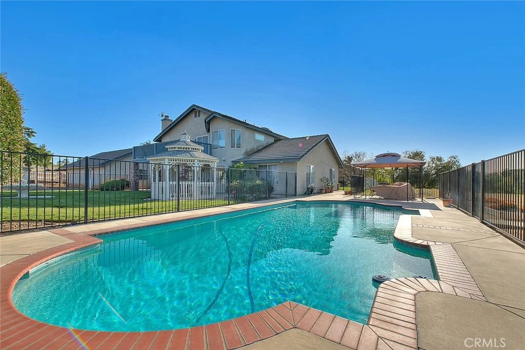 **JUMP INTO YOUR REFRESHING POOL IN TIME FOR SUMMER**This charming ranch-style home on 1.82 acres in the sought-after Gavilan Hills area of Lake Mathews boasts a myriad of features, including a two-stall barn, built-in swimming pool, citrus grove, and manicured lawn. With a spacious layout of 4 bedrooms, 3 bathrooms, formal dining room, ranch living room, and family room with a fireplace, there is ample space for comfortable living and entertaining. The property is adorned with vinyl two rail perimeter fencing and iron cross fencing, while the convenience of a 3-car garage with direct access to the house and an additional two-car garage adds practicality. Located just 20 minutes away from various amenities, this home offers a perfect blend of serenity and accessibility to entertainment options.