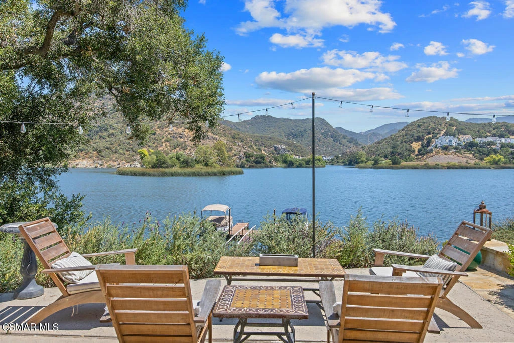 Experience vacation living every single day living at this lakefront home in prestigious Lake Sherwood. A home in this highly sought after location is rarely on the market, and this waterfront locale is arguably THE BEST SPOT on all of Lake Sherwood. Sitting out on the back patio watching the birds and the boats go by is the most relaxing experience and this view is a panoramic lake view right in the middle of the lake. You can see the water shimmering on the lake from almost all the rooms in the home and since the back of the home faces West, the angle of the sun at this home is ideal. At sunset, take a soak in the gorgeous stone infinity spa and life is darn good. This home comes with a private boat dock located right in front. The property features private oak trees and rose and lavender gardens that extend from the patio to the water. With three bedrooms and a spacious office, and two full bathrooms plus a powder bathroom, this ONE STORY home is a wonderful retreat. Bulit in 1954, much of this home has been updated, but it has retained it's vintage charm. The primary bedroom is enormous with a large walk-in closet and floor to ceiling windows to enjoy the lake view at any time of day. The kitchen is a gallery style kitchen with a new induction stove, and the large walk-in pantry will delight all family members. There is also an indoor laundry room with a sink. One perk of this location is access to the private walkway in front of the lake front homes on the north side of the lake which is a magical place to take a morning walk. There is also a converted boat house for extra storage. Please note there is a carport for two cars and ample parking on the driveway but no garage.