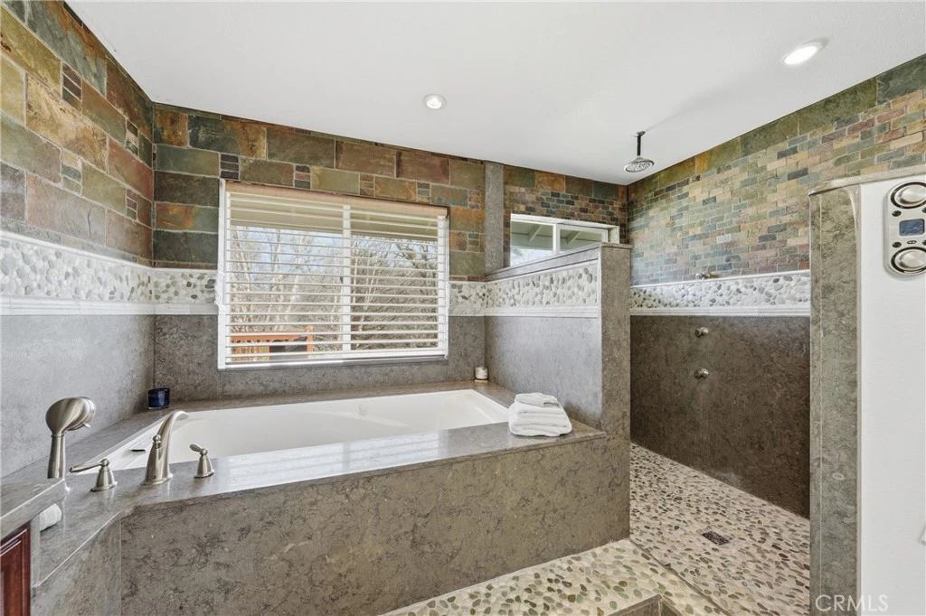 Beautifully designed single-story custom home in the desirable Oak Park area of North Lakeport. Offering 3 bedrooms, 2.5 bathrooms, and approximately 3,123 square feet of living space, this home sits on just under one acre of landscaped property. The spacious floor plan features hardwood flooring, vaulted ceilings, and a sunken living room with a marble surround gas fireplace. A formal dining room connects to the large chef’s kitchen, complete with granite slab countertops, custom cabinetry, a large island with utility sink, double ovens, propane cooktop, pantry, built-in microwave and warming tray, and a commercial-sized refrigerator/freezer. The kitchen opens to an additional living area with a built-in wet bar, beverage refrigerator, granite desk workspace, and sliding glass doors leading to a large deck overlooking the backyard. The home includes two guest bedrooms, a full bathroom with dual shower heads, soaking tub, and granite double vanity, plus a half bath and laundry room. The private primary suite offers deck access, a large walk-through closet, and a spa-style bathroom with granite double vanity, jetted soaking tub, stone walk-in shower with multiple shower options, and private water closet. Additional features include 4-zone central heat and air, tankless water heater, finished three-car garage with a separate bay that has front and rear access, circular concrete driveway, covered entry parking, and space for RV or trailer parking. The landscaped grounds feature automated irrigation, mature landscaping, a fenced backyard with wrought iron fencing, and additional space suitable for animals. Conveniently located near Lakeport schools, the hospital, and Clear Lake.