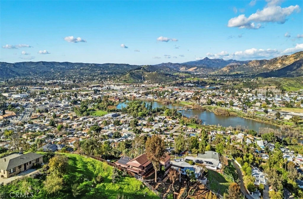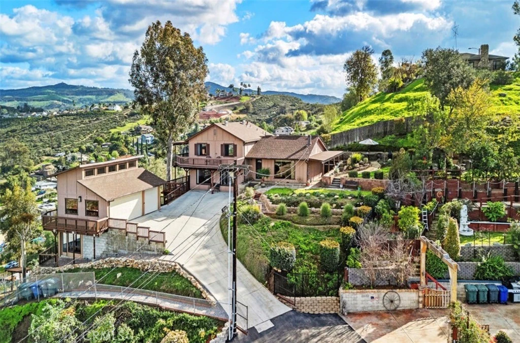 Welcome to Castle Court Drive, a truly one-of-a-kind mountain-top residence offering panoramic views overlooking Lakeside and the surrounding countryside. Perched at elevation, this exceptional property captures sweeping vistas from nearly every room, with abundant windows designed to frame the scenery from all angles. The home has been thoughtfully updated and meticulously maintained by the original owner, featuring new countertops, updated appliances, a new HVAC system, solar power system, brand-new roof, and new windows throughout. The attached and detached structures are equally impressive, including a permitted, detached tri-level 3-car garage with workshop space below and attic storage above, offering approximately 6-foot ceilings in both the shop and attic areas. The garage itself features six picture-frame windows showcasing remarkable views. The main level offers an open floor plan with a wood-burning fireplace anchoring the living room and a well-appointed kitchen with stainless steel appliances. A striking picture-frame window highlights the stairway leading to the upper level, where a guest bedroom and the primary suite are located. The primary suite features windows on multiple sides and direct access to a wraparound deck ideal for enjoying sunrise and sunset views. The lower level includes a den, an additional guest bedroom, and access to another wraparound porch, creating flexible living and entertaining spaces throughout the home. Outdoors, the property is beautifully landscaped and fully chain-link fenced, featuring multiple fire pits and extensive lighting throughout the grounds. The exterior lighting system includes solar-powered fixtures and photocell-controlled illumination that activates at dusk, creating an inviting ambiance in the evening while showcasing city lights below. Located near schools and shopping, the property also offers direct access to nature. The rear of the home backs to the Whitaker property, now a public preserve, providing immediate access to hiking trails directly from the backyard (private access key). This is a rare opportunity to own a distinctive mountain-top home offering privacy, views, and functionality in a truly special setting.