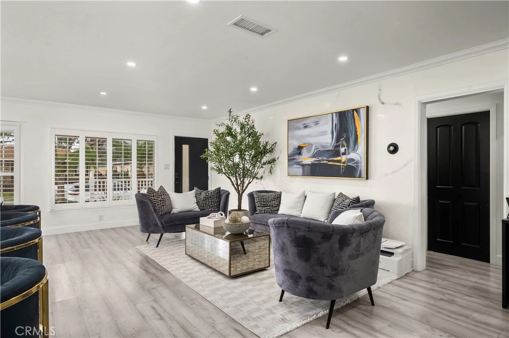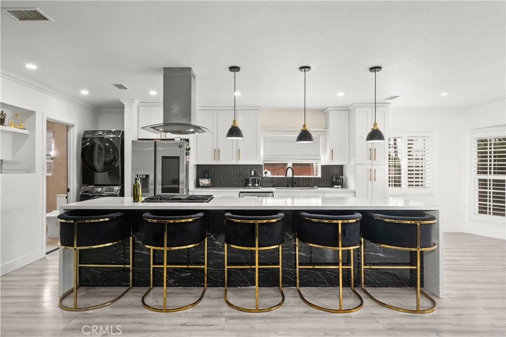 Welcome to a beautifully updated single family home designed for modern living. This residence features an open concept layout that seamlessly connects the living, dining, and kitchen spaces, creating an ideal environment for everyday comfort and entertaining. The fully remodeled kitchen is the heart of the home, showcasing quartz countertops, custom cabinetry, a large center island, and stainless steel appliances. Both bathrooms have been completely remodeled with stylish tile finishes and upgraded fixtures, delivering a spa like experience at home. Upgraded flooring flows throughout the property, complemented by modern LED recessed lighting and smart electrical switches for effortless app based control. A custom built electric fireplace adds a sleek focal point to the main living area. Smart home conveniences include an automatic front door lock, a front door camera, and a low profile smart garage opener that is Alexa friendly. The garage itself has been remodeled with high ceilings, offering excellent space for parking, storage, or future flexibility. Additional upgrades include a new water heater and a newer roof on the rear portion of the home, making this property truly move in ready. Outside, enjoy strong curb appeal with fresh landscaping and a welcoming front porch. All of this is located in a highly desirable Lakewood neighborhood, just minutes from Lakewood Center Mall, Costco, Home Depot, Target, local dining, parks, top rated schools, and with easy access to the 605 and 91 freeways for convenient commuting throughout Los Angeles and Orange County.