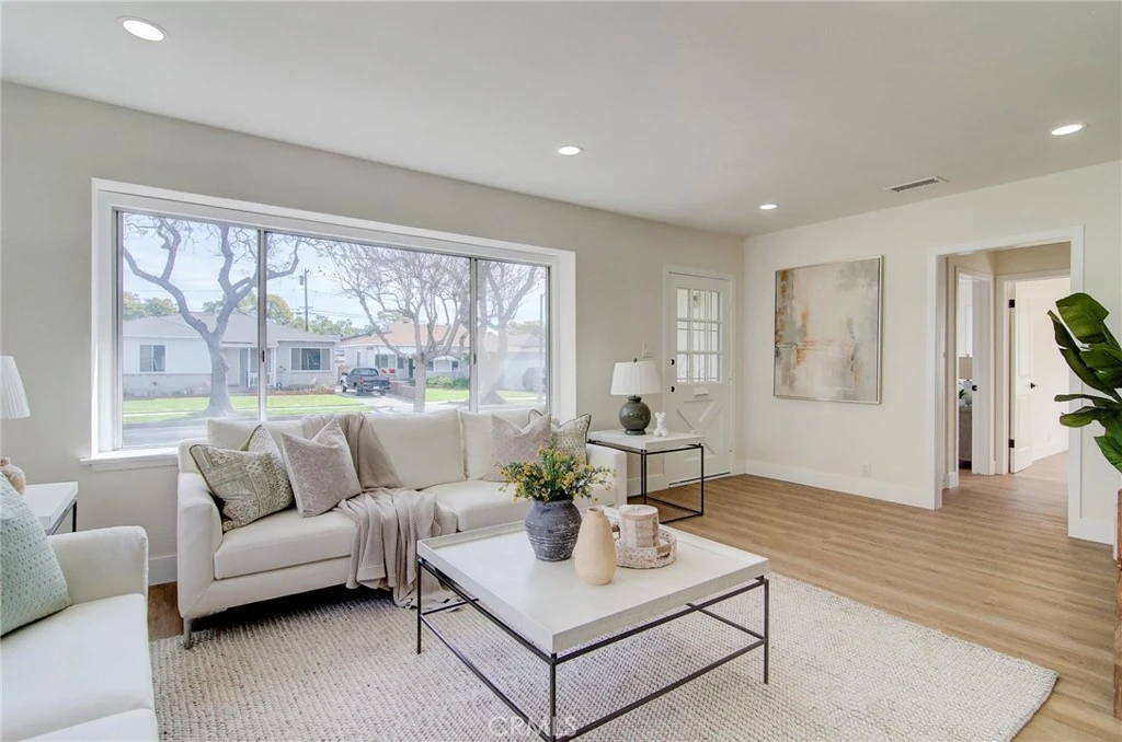 Fantastic purchase opportunity on this beautifully remodeled Lakewood home in move-in condition. New upgrades include: Natural wood shaker solid wood cabinets with black accessories, white/gold quartz countertops and matte marble backsplash, GE appliances (stove, dishwasher, microwave and Moen disposal), large-format porcelain tiles on bathroom floors and shower walls, a 42" bathroom vanity; tempered glass safety shower doors, a humidity-sensing exhaust fan, 6mm, 9" vinyl flooring throughout the house, 5 1/2" floor and window mouldings, 2-1/2" interior door and closet mouldings, accent walls in the laundry room, newly textured ceilings, fresh interior and exterior painting, drywall in interior of the garage, sound damping solid wood decorative accent walls, a dual-pane window and exterior door in the laundry room, closet doors and accessories, section 1 termite work completed, hvac including ductwork for central furnace and AC with Ecobee Smarthome thermostat, GFCI's, switches, outlets, recessed lights, pendant lights, LED bathroom mirror lights, overhead garage door motor with lighting kit and safety sensors, vinyl privacy fence in the driveway, automated sprinkler system with timer, newer roof and PEX plumbing. This home is in an interior location and features a functional floorplan with a spacious living room and dining area, a bright kitchen, nicely sized bedrooms, a separate laundry room, a two-car detached garage and a huge backyard for limitless possibilities. Don't miss out!