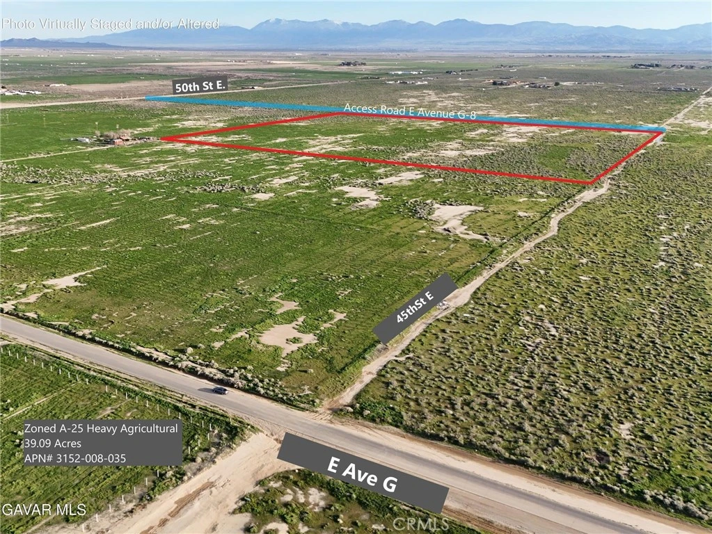 APN: 3152-008-035 Coordinates: 34.728306, -118.047972 40 acre parcel for sale in LA County. This lot is located in Lancaster, CA on 45th ST and E Avenue G. Large parcel zoned for agricultural use located near a paved street. Excellent location, adjacent parcel is also available APN# 3152-008-036.