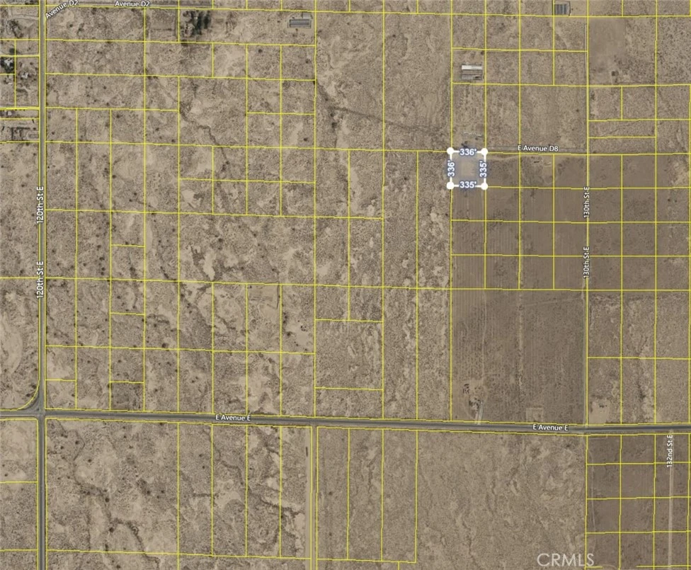 Great land parcel with frontage on E Ave D8. It's off 130th St E, as well as paved Avenue E. There are power lines running along Avenue E. Avenue E is a major street that can take you to Sierra Hwy or the 14 Freeway. Just to the north of this property, at 120th St and Ave B, is the entrance of Edwards AFB. There are a number of homes and ranches in the area. This property provides a great opportunity to own a land parcel with street frontage, close to a paved street, for a low price. This may be a great location to camp, go off-roading, install a mobile home, build a house, or start a small farm. This property is secluded while also being accessible. Great opportunity, don't miss out!