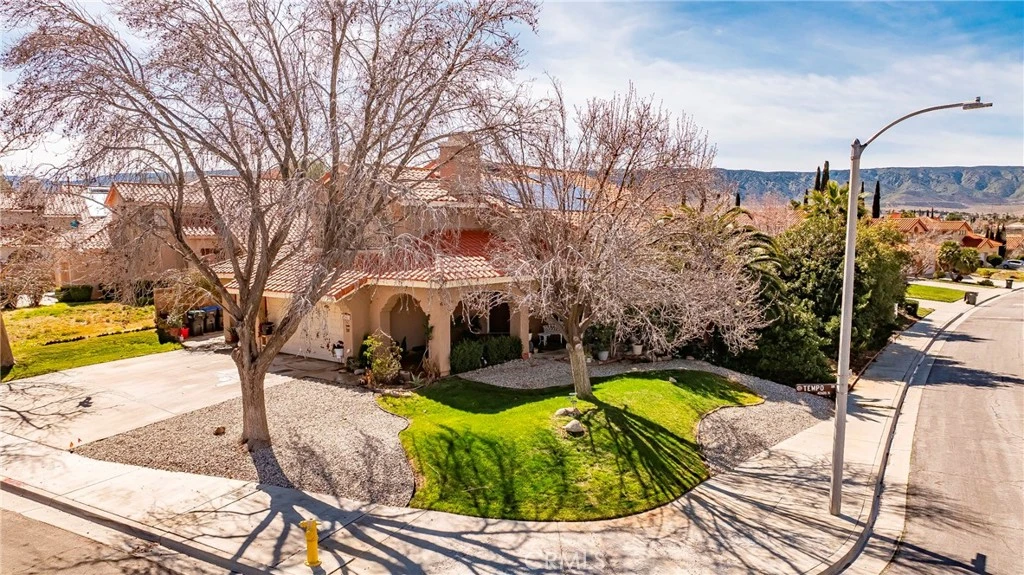 GORGEOUS RENOVATED POOL HOME, IN DESIRABLE QUARTZ HILL! This recently renovated 4-bedroom, 3-bathroom residence with a 3 car garage and paved RV access offers 2,652 square feet of thoughtfully designed living space in the Quartz Hill neighborhood. This home features a newer kitchen with modern finishes. The open floorplan flows seamlessly into a spacious family room, creating an ideal setting for both everyday living and entertainment. Step outside to a custom-designed pool and spa surrounded by a large and landscaped backyard with mature fruit trees including pomegranate, apricot, fig, and grape vines. Upstairs, boast a large bonus room for modern living. The primary suite has enough room for a CAL-king bed while the ensuite bathroom has a separate shower and tub. The remaining 3 bedrooms are of good size with plenty of closet space. Additional highlights include renovated and modern lighting fixtures. For additional value, the solar system has been fully paid off and comes with the property. This is a great opportunity to own a renovated home that combines style, function, and value!