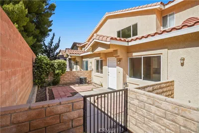This beautifully updated townhouse is located in one of Lancaster’s most sought-after gated communities, and as soon as you step inside you’ll immediately recognize the owner’s true “Pride-Of-Ownership.” Here are just a few of its many other fine features: *You’ll step into a flowing 1,380 square foot open concept two story floorplan that is in “Move-In-Condition” with durable laminate flooring throughout *The spacious living room has an electric fireplace with heating vents, custom facade, newer custom mantle with self-closing hidden storage, contemporary black finished designer wall, and direct access to the lushly landscaped private backyard with entertainer’s patio *The family’s cook is going to truly appreciate the kitchen’s large garden window, abundant cabinets with counter lighting, ample quartz counters with full back-splash, deep basin stainless steel sink, built-in stainless steel appliances, and the convenience of the adjoining dining area *Both bedrooms have walk-in closets and share a beautifully appointed full “Jack & Jill” bathroom with 2 large mirrored vanities and newer fixtures; The main suite also has a private balcony *A total of 1½ bathrooms; The ½ bathroom is located on the first level for your guests *Functionally located laundry *Central heat & air for year-round comfort *2 car direct access garage with abundant storage cabinets and workbench *HOA pays for water and trash pickup *You’re going to enjoy the pet friendly community’s lush greenbelts, sparkling pool and soothing spa *Great location close to schools, parks, restaurants, grocery stores, shopping and the 14 freeway *Call now for all of the details and I’ll gladly arrange your private tour.