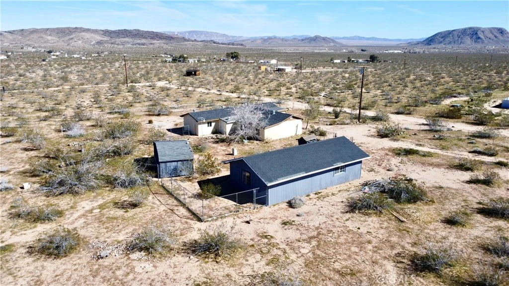 **Desert Getaway on Five Acres of Panoramic Views** Welcome to your own private desert retreat, where sweeping, unobstructed panoramic views stretch in every direction across the stunning High Desert landscape. Potential of two homes on one lot with the extensive detached three car garage. This newly renovated three-bedroom, one-bathroom home sits on an expansive five-acre parcel with the exciting possibility of subdividing — making it an exceptional opportunity for investors and homeowners alike. Step inside to discover a thoughtfully updated interior featuring new flooring, fresh paint, modern baseboards, and elegant recessed lighting. The fully upgraded kitchen boasts new stainless steel appliances and beautiful cabinetry, creating a space that is both functional and inviting. The tastefully tiled shower completes the refreshed bathroom, ensuring every detail has been carefully considered. An enclosed patio offers versatile living space, easily serving as an additional room, home office, or peaceful sitting area where you can soak in the desert serenity. Outside, an impressive 800-square-foot detached garage and workshop presents remarkable potential for conversion into an accessory dwelling unit, perfect for guests or supplemental rental income. The surrounding neighborhood offers a tranquil desert environment while keeping you connected to noteworthy attractions. Homestead Valley Park is just minutes away for outdoor recreation, while Joshua Tree National Park provides world-class hiking and camping adventures nearby. The property also offers convenient proximity to the Twentynine Palms Marine Corps Base, appealing to military families seeking a peaceful home base. This is desert living at its finest — space, serenity, and stunning views all at an attractive price point. Schedule your private showing today.