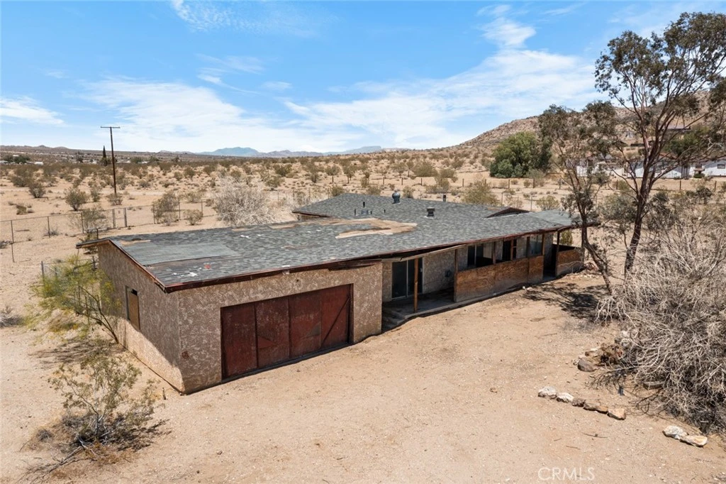 A solid fixer in a great Landers location, ready for your vision. With its good bones, this home has high potential payoff from your sweat equity. Sitting on 5 acres (approximately 1 acre fenced) the 3 bedroom, 1.5 bath home's view lines up beautifully with Goat Mountain as well as sitting near its own mountain to the north. The living room, family room and even the kitchen are all generously sized. It has inside laundry, swell. The oversized, attached garage would make a great shop during your renovations and as a bonus, will have plenty of room for vehicles and toys once completed. The home is connected to power and district water. You'd be in good company as many of the homes in this part of Landers have already been renovated. It's a short drive to Landers attractions like The Integratron, Giant Rock, La Copine. Easy access to King of the Hammers, Pappy and Harriets and Joshua Tree Village and National Park.