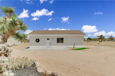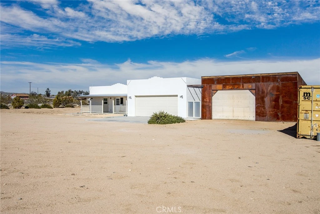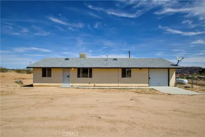 SEE THE VISEO ABOVE!! Immaculately maintained and recently **REDUCED**, this Southwest-style adobe home is in near-perfect condition and offers an exceptional blend of privacy, comfort, and stunning desert scenery. Perched high on the mesa, the property showcases sweeping views of the iconic Goat Mountain—**VIEWS, VIEWS, VIEWS!** A large, detached finished garage complements the home, while the standout feature is the **HUGE custom-built metal workshop**, perfect for an artist’s studio, creative retreat, or hobby space. The expansive parcel provides excellent privacy with convenient access to Reche Rd via Fortuna Ave. Inside, the spacious kitchen features ceramic tile countertops, stainless steel appliances—including a side-by-side refrigerator—a breakfast bar, and abundant cupboard space. Custom vertical blinds add a thoughtful finishing touch. The bedrooms are simple, functional, and comfortable, each offering ceiling fans and mirrored closet doors. Cable, internet, and phone services are available. The roomy bathroom is practical and well-kept, and the home is equipped with central heating and air conditioning for year-round comfort. Large concrete patios and connecting walkways enhance the outdoor living experience. The finished and painted garage includes an automatic door opener, two large windows for natural light and ventilation, laundry hookups, and motion-sensor security lighting. The fully enclosed backyard features a **private jacuzzi**, ideal for enjoying peaceful sunrises and unforgettable desert sunsets. Convenience is unmatched—just a few miles from a coffee shop, gourmet restaurant, grocery store, café, and gas station at Hero’s Market. No need to drive into Yucca Valley for essentials. This location is ideal for both **short-term and long-term rentals**, with **no current municipal restrictions on Airbnb permitting**. Whether you're seeking a primary residence, a vacation getaway, or a strong investment property, this opportunity checks every box. Located near the Integratron and Giant Rock, this well-kept home sits in the heart of Landers. **Sellers are motivated and open to offers—don’t miss this incredible opportunity.** **SEE VIDEO ABOVE!