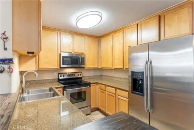 Affordable 1 bedroom, 1 bath 1st floor condo with patio. Central A/C and heating. Previously remodeled kitchen with stainless appliances and granite counters. Stove/oven, microwave, refrigerator and dishwasher included. Walk-in mirrored closet in bedroom. Balcony includes a storage closet. Gated complex includes a pool area, gym and laundry room. 767 square feet. 1 parking space. Complex is very close to Trolley stop, 94 freeway and central Lemon Grove shopping.