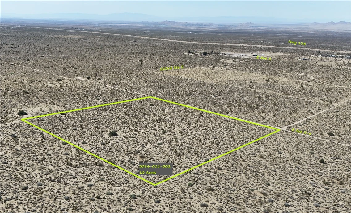 APN: 3086-011-002 Coordinates: 34.476667, -117.727139 10 Acres for sale in LA County. This parcel is located on Ave X 8 in Llano, CA, just off of 223rds St E. This is a rural area in the Antelope Valley near the county border with San Bernardino. Easy access to highway 138 and into Angeles national forest. Live off grid on this large parcel under wide open desert skies.