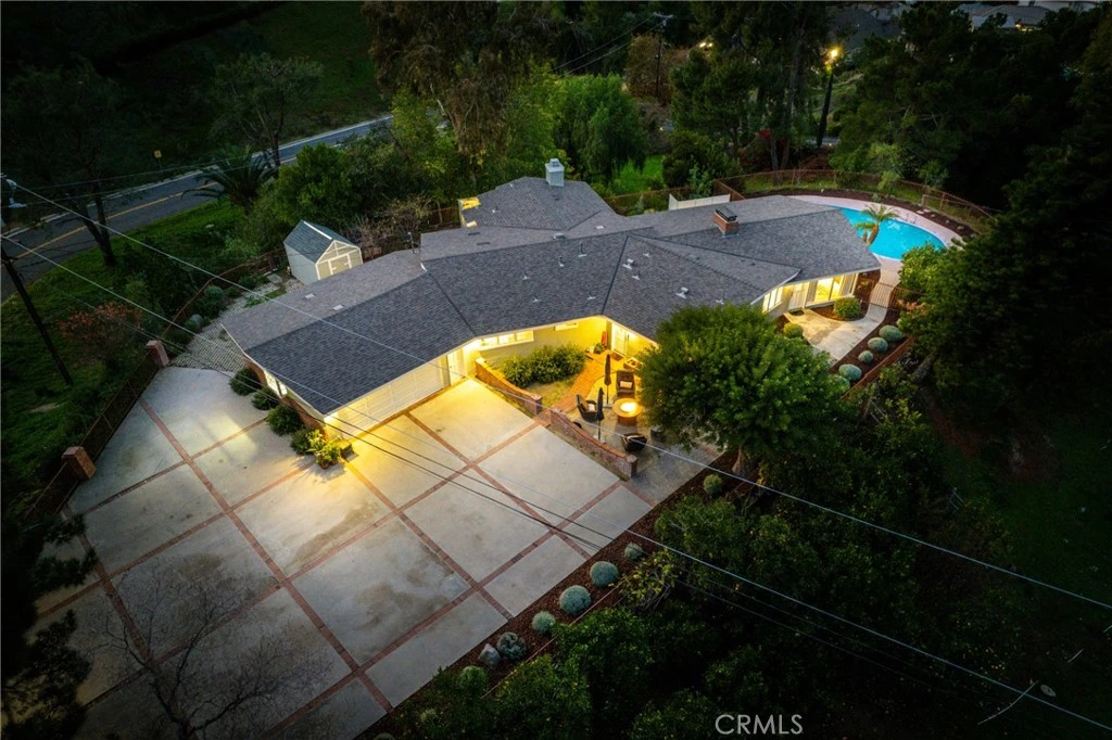 Beautifully renovated 3-bedroom, 3-bathroom home offering 2,370 square feet of thoughtfully upgraded living space on a private and fully usable 1.1-acre lot with a swimming pool, mature landscaping, and an expansive orchard. This turnkey property combines modern upgrades, luxury finishes, and indoor-outdoor living, making it ideal for those seeking space, privacy, and move-in-ready condition. The interior features wide-plank engineered hardwood flooring throughout the main living areas, new designer lighting, solid-core interior and closet doors, upgraded hardware, and custom drapery in the main living spaces and primary bedroom. Bedrooms feature new stain- and water-resistant carpet, offering durability and comfort. The upgraded kitchen includes KitchenAid appliances, custom soft-close cabinetry, and quartz countertops, providing a clean, functional space for cooking and entertaining. Bathrooms have been remodeled with high-end finishes. The primary bathroom features porcelain tile, a luxurious soaker tub, quartz countertops, custom soft-close cabinetry, updated plumbing fixtures, and modern lighting. The secondary bathroom has also been remodeled with new cabinetry, tile, mirror, lighting, toilet, and plumbing fixtures, creating a cohesive and updated feel throughout the home. Major system upgrades include a new roof, new fascia, new electrical panel, new water heater, new chimney cap, fresh exterior paint, and a new variable-speed pool pump. The entire 1.1-acre property has been professionally cleared and fire-abated, including removal of underbrush and trees near the home, enhancing safety, usability, and peace of mind. Outdoor living is highlighted by a private pool, open space, and a productive orchard serviced by a smart drip irrigation system controllable by phone. Mature fruit trees include navel and Valencia oranges, tangerine, tangelo, mandarin oranges, pink grapefruit, cocktail grapefruit, yellow grapefruit, kumquat, lemon, lime, pear, plum, and peach. Additional landscaping includes lavender and olive bushes, completing this peaceful and private setting. This exceptional property offers a rare combination of acreage, pool, extensive upgrades, fruit trees, and turnkey condition, ideal for those seeking a private estate, entertainer’s home, or retreat-style living.
