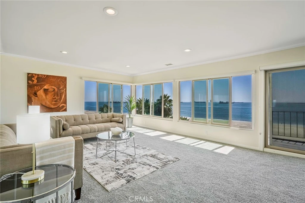 Exceptional and unique 2 condos in one AT THE OCEAN WITH FULL OCEAN VIEWS! Welcome to this penthouse luxury residence with over 2400 SF in living space, 4 bedrooms including 2 primary suites both with ocean views, 3 full bathrooms including 2 ensuite bathrooms, just steps to the water and the exquisite experience of living right on the beach with full access to bike path and walking bath, where you can get from Belmont Shore to Shoreline Village without having to get into your car. Park your car here in one of the 2 secure parking spaces and take the elevator to your top level suite and be prepared for a wow factor when you walk in and see the vast ocean views pouring in from the large windows in the oversized living room. The balcony overlooks the ocean and offers panoramic views up and down the coastline. The property has central heat and air conditioning, inside laundry, recessed lighting and dual pane newer windows, and upgrades throughout. Special features include an oversized primary retreat wiith its own living area (with a room divider that can be pulled out) and kitchenette, a walk in closet that is bigger than most bedrooms, completely built out and ready for you expansive wardrobe; as well, there are 2 built in Murphy beds for all those out-of-town guests who will be clamoring to spend time with you at the beautiful home. There is also a TV room off the kitchen and both have ocean views. Don't miss this exciting property which is like owning 2 condos with ocean views for the price of one. Note: this condo is 2 condos combined into 1 - unit 708 which was originally a 3 bedroom 2 bath at 1649 SF, and #711 which was originally a 2 bedroom 2 bath at 1103 SF. Here, this property was remodeled to be one luxury penthouse with over 2700 SF of living space, and there are 2 entrances, 2 Assessor Parcel Numbers and 2 Legal Descriptions, and there is a door between the 2 suites that can be locked to turn this back into 2 units.
