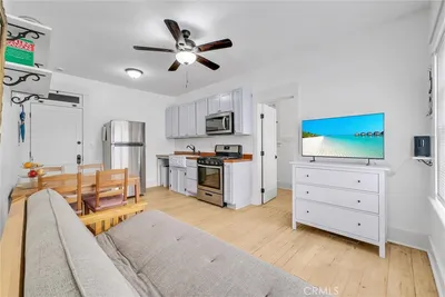 Turnkey beachside unit in the heart of Historic Long Beach! This completely remodeled studio unit has been reimagined top to bottom with modern finishes. Located on the top floor & offering views of the city lights. Light and bright, the open- concept layout features new flooring, sleek cabinetry, quartz countertops, new appliances, new windows, recessed lighting, new paint, & ample storage. Located in vibrant downtown LB, and only minutes from the beach, shopping, & dining. Move-in Ready!