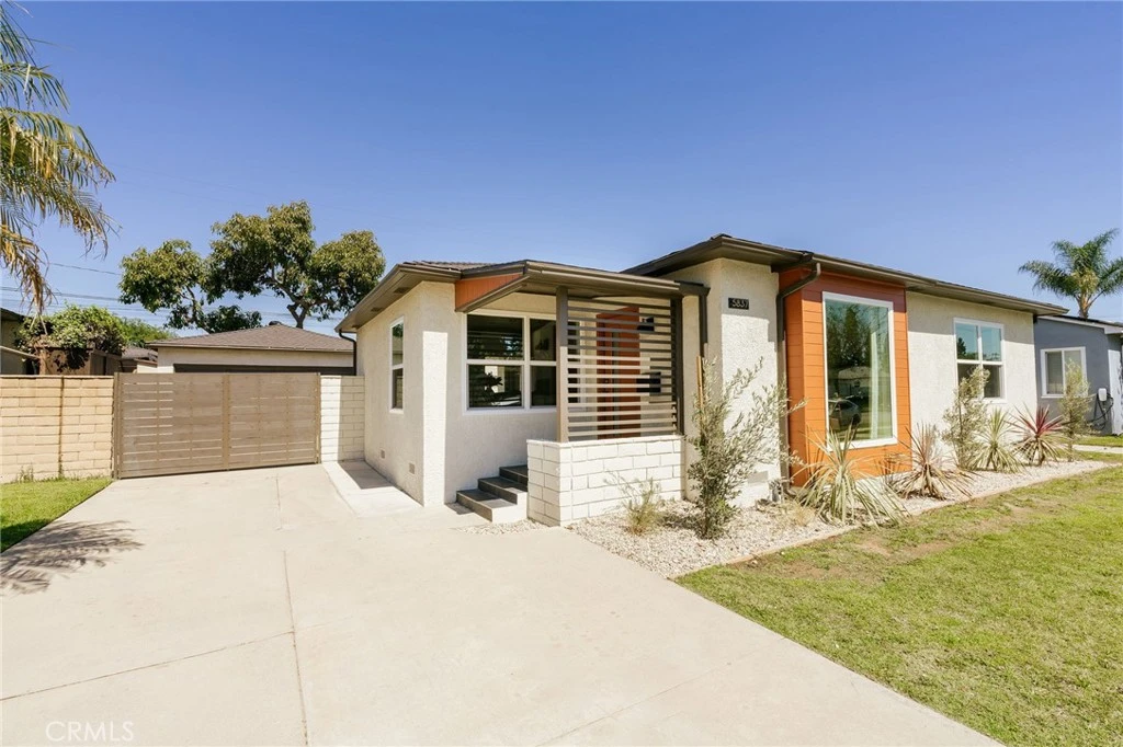 Welcome to this beautifully renovated 3 bedroom, 2-bathroom home located in desirable Long Beach neighborhood. Featuring a bright open floorplan, the front living area flows through to the dining area and kitchen. The kitchen has been updated with new cabinets, sleek quartz counter tops, tile backsplash, stylish fixtures, stainless-steel appliances and peninsula offering additional seating. The spacious primary bedroom has open beam ceilings, walk-in closet with custom built-ins, ensuite bathroom and access to outdoor covered patio. Both the primary and hall bathroom feature new double sink vanities, stylish new fixtures, and custom tile work. Other features include freshly painted interior and exterior, new luxury throughout the living area and bedrooms, new energy efficient vinyl windows, new doors, new roof, plumbing and light fixtures, new HVAC system, new garage door and motor. and tankless water heater. This home is great for fun and entertainment with a great outdoor space. The private enclosed backyard has a large, covered patio and a manicured yard. There is a two-car detached garage with additional off-street parking and gated driveway. Detached two car garage and spacious yard offers possible ADU potential. Buyer to verify all building codes and ADU guidelines with the city Tax rolls show different bedroom count.