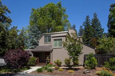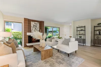 Walk to downtown Los Altos or Rancho Shopping Center, the epitomy of a Los Altos lifestyle. This elegantly, updated townhome offers a turnkey home w/ elevated finishes. Walk up a few steps to an inviting front patio, enter the home into a living room adorned with natural lighting, vaulted ceiling, and cozy fireplace. The dining area connects to the living room, kitchen and 1/2 bath to create a "great room" feel. The kitchen includes beautiful cabinetry (recently painted), granite countertops w/ newer backsplash, stainless-steel appliances, and natural stone (travertine) flooring. The main level also boasts a bedroom. Ask us how a full bath can be added next to bedroom. Upstairs, the two bedroom suites are located at opposite ends for privacy. Each suite include a bedroom, updated bathroom, and walk-in closet. A bonus to this property is a rare 2-car attached garage with an extra storage room. Other amenities: hardwood flooring throughout, central AC, solid core doors, and whole house water softener. Excellent Los Altos schools, including the highly-coveted Covington Elem (buyer to verify).