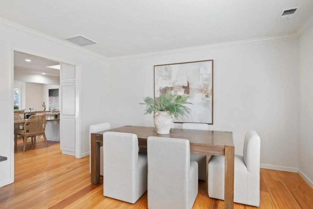 Nestled in a quiet Los Altos cul-de-sac, this bright and airy ranch-style home offers an ideal blend of classic charm and modern functionality. The thoughtfully designed floor plan features three spacious bedrooms and two bathrooms, with a versatile layout that easily allows for a fourth bedroom conversion. At the heart of the home, a stunning updated kitchen serves as a culinary center, boasting a large island, commercial-grade cooktop, built-in double ovens, a wine refrigerator, and abundant cabinet space, all flowing seamlessly into the expansive great room. Elegant hardwood flooring and a well-placed skylight enhance the natural light that fills the interior, while the large living-dining combination provides a sophisticated space for entertaining. Practical touches like an inside laundry room add convenience, but the true highlight is the breakfast room, which overlooks a sprawling backyard featuring a rare and meticulously maintained succulent garden. Conveniently located near top-rated schools, this property perfectly captures the quintessential California lifestyle.