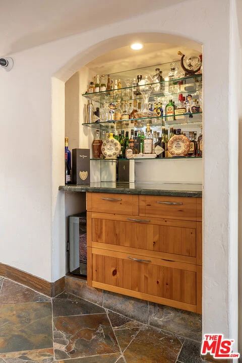 Nestled in the prestigious Comstock Hills neighborhood, this magnificent Spanish-style Westwood estate thoughtfully reimagined by an architect-owner in 2009 offers the rare combination of timeless architecture, generous space, and an unbeatable Westside location. Spanning 4,600 square feet on a lush 9,737 SF lot, this entertainer's dream home unfolds across two beautifully appointed levels. The grand living room anchors the main floor as French doors spill out onto front and side patios, seamlessly blending indoor and outdoor living. A dramatic dining room with soaring beamed ceilings and French doors to the garden sets the stage for memorable dinner parties, while the chef's kitchen features granite countertops, double ovens, and a sun-drenched breakfast nook with a skylight with views of Century City. A warm library/office with garden views provides a quiet retreat, while the expansive family room with its beamed ceiling, tile floors, and private entrance offers ideal flexibility for a media room, playroom, or home gym. Two bedrooms and baths and an expansive guest or maid's suite with its own private patio complete the downstairs. Upstairs, the serene primary suite opens to a sweeping balcony and features a spa-like bath with Jacuzzi tub, skylit shower, his-and-hers vanities, and generous walk-in closets. Also upstairs are a secondary en-suite bedroom, a spacious adjacent bedroom, and a bonus room perfect as a nursery or home office, all with tree-top vistas. The generous yard offers plenty of space for barbecues, gardening, play, or simply soaking in the California sun. A 2-car attached garage provides secure parking and easy access. All appliances included, including refrigerator, washer, dryer, dishwasher, microwave, and range/oven. Central AC/heat keeps things comfortable year-round. Located on a tranquil residential street, just minutes to Century City, Beverly Hills, UCLA, Westwood Village, and the 405 freeway. Zoned for highly-regarded Fairburn Avenue Elementary. This upscale enclave delivers walkability, a quiet residential setting, and Westside living at its finest--ideal for professionals, families, or those seeking a rare full-size home in the heart of the city.