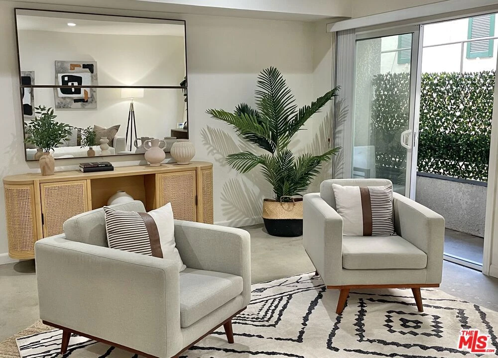 Super chic contemporary finished 2 bed/2.5 bath townhouse style condo in smaller 14-unit French Chateau Style Condo Complex on desired Ashton Blvd. , just South of Wilshire! Open floor plan that includes entry with engineered hardwood flooring, closet and powder room opening to spacious living room with contemporary concrete floors sliding door to covered balcony, dining room with wet bar and open kitchen with wrap-around breakfast bar, quartz countertops, stainless steel appliances including gas range/oven and built-in microwave, pantry cabinet with pull out drawers. Full laundry room with lots of room for storage and built-in shelving. Upstairs includes 2 bedrooms/2 bathrooms including oversized spacious primary suite with large walk-in closet and sliding door to balcony. Totally remodeled primary bathroom with tile and quartz finishes including separate bath and shower, floating contemporary cabinet with 2 sinks. 2nd bedroom is filled with natural light and large closet with updated full bathroom in hallway. Pets ok, 2 secured tandem parking, guest parking and extra storage. Ideal proximity to UCLA and Westwood Village retail and restaurants, Westfield Century City Mall, 405 and 10 Fwy access and Beverly Hills. Fairburn Elementary School. Move-in ready!