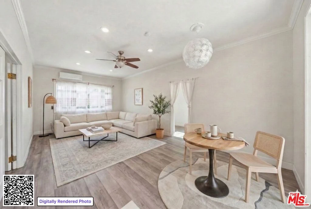 Welcome to this charming Spanish Colonial Revival single-family home near Downtown Los Angeles, offering approximately 2,110 sq ft of beautifully updated living space. This 4-bedroom, 2.5-bath residence also features a versatile den, providing flexible living options for modern Los Angeles living. Thoughtfully remodeled by the current owners, the home showcases newer kitchen appliances, updated cabinetry, modern countertops, and stylish laminate flooring throughout. The home also features multiple energy-efficient mini-split air conditioning units for individualized climate control in each bedroom and living space. The inviting floor plan blends classic architectural character with contemporary upgrades, creating a warm and functional living environment. Upstairs, with its own private entrance, you'll find an additional den area of approximately 870 sq ft, ideal for entertaining or accommodating visitors. Outdoor spaces include a charming front garden and a private backyard area perfect for relaxing or hosting gatherings. The gated property offers added privacy and security, with a driveway that accommodates three or more vehicles. A detached shed provides extra storage, and the washer and dryer are conveniently located in a separate laundry room just outside the rear of the home. Near Downtown, USC, Koreatown, and much more. A rare opportunity to own a character-filled, move-in-ready home in a prime urban location.