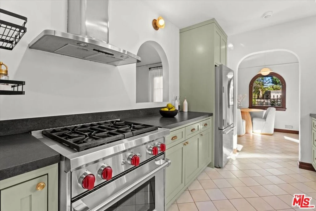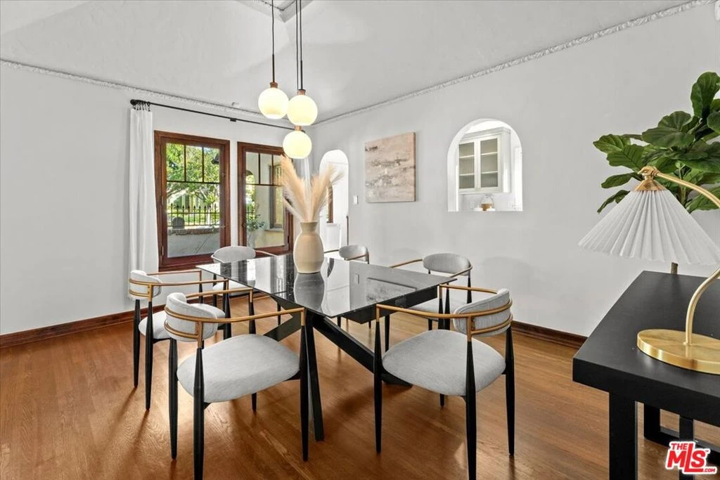 Charming English Tudor Revival on tree-lined Sierra Bonita in Wilshire Vista/Miracle Mile. This meticulously updated home blends historic character with extensive modern upgrades, including a fully built guest house. Set behind native landscaping, the property features a steep gabled roofline, turret, and original stained glass window. A double driveway leads to a private gated courtyard. Inside, the home showcases restored crown moulding, barreled ceilings, refinished hardwood floors, custom built-ins, and original crown glass windows. Formal dining room with arched ceilings flows into a chef's kitchen with custom cabinetry, Caesarstone counters, sealed Roca tile, and Fisher & Paykel, Wolf, and Bosch appliances. Breakfast nook and adjacent laundry room with LG washer/dryer. Primary suite includes custom closet and French doors to a rebuilt deck. Primary bath features herringbone tile, freestanding tub, and walk-in shower. Private backyard offers mature landscaping with citrus trees, jasmine, trumpet vines, and a vine-covered pergola. Converted garage functions as a guest casita with kitchen, built-ins, exposed beams, and full bath. Major upgrades: new 200-amp electrical panel with surge protection, upgraded grounding (main + guest house), high-efficiency Carrier Infinity HVAC with new ductwork, tankless water heater, seismic retrofit, structural repairs, attic insulation with radiant barrier, sump pump, foundation waterproofing, and French drains. Additional improvements include rebuilt fireplace, fresh interior paint, renovated closets, new ventilation, reverse osmosis system, updated guest house bath, recessed lighting, landscaping, security lighting, and termite treatment. Smart features: HVAC thermostat, tankless water heater, Moen Flo system, irrigation, smart locks, ADT security, and Nest cameras. Moments from Sonoratown, Dam Good Coffee, Bloom, LACMA, The Grove, and the 10 freeway.