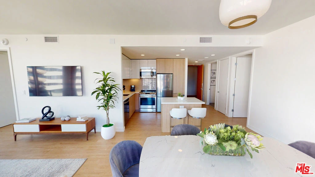 The Landmark Los Angeles is a dazzling 34 story residential tower offering sophisticated floor plans paired with unparalleled views and resort-inspired amenities. Apartment #3109 is a 2 BR / 2 BA corner suite with spectacular oceanfront western and southern views from the 31st floor and upgraded penthouse finishes. Centrally located on Wilshire Blvd. and tucked behind a beautifully landscaped one-acre park, LMLA offers a serene oasis of calm and an uncompromised living experience that is worlds apart from the hustle and bustle of the city. The LMLA lifestyle highlights the unique indoor/ outdoor lifestyle for which Los Angeles is known. Our signature floor-to-ceiling glass-walled apartment suites open onto expansive private balconies for spectacular ocean and mountain views accompanied by the cool ocean breeze. Get into the best shape of your life in the professional fitness center or swim laps in the 75'x25' heated pool. For the days when all you want to do is kick back and relax, you'll find yourself at home amidst plush resident lounges, our modern multimedia club room, outdoor fire pits and gourmet on-site cafe.Our stylish and modern apartment residences offer gourmet kitchens with custom Italian cabinetry, state-of-the-art energy efficient appliances, premium wood-style plank flooring, walk-in closets with custom shelving, in-unit washer and dryer, rolling window shades, and so much more.