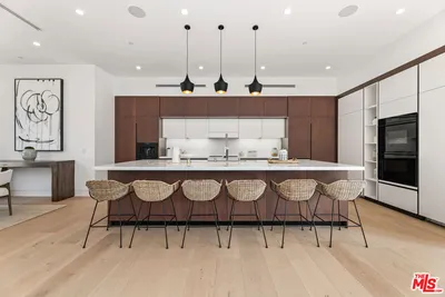 Located in Brentwood, this home blends modern luxury, thoughtful design, and seamless indoor-outdoor living. With over 90ft of frontage this home features 6 bedrooms, 8 bathrooms, gym, home theater with Sony 4K projector, and a large spacious flat backyard perfect for entertainment. Soaring ceilings and abundant natural sunlight throughout. Generous living areas and expansive Fleetwood pocket glass doors provide the perfect setting for entertaining & everyday living. Gourmet chef's kitchen with top-of-the-line appliances, plenty of cabinets, and oversized center island. The spacious master suite offers a serene sitting area, fireplace, and custom walk-in closet designed for refined luxury. This home provides a perfect blend and exquisite fusion of timeless elegance, warmth, and contemporary living.