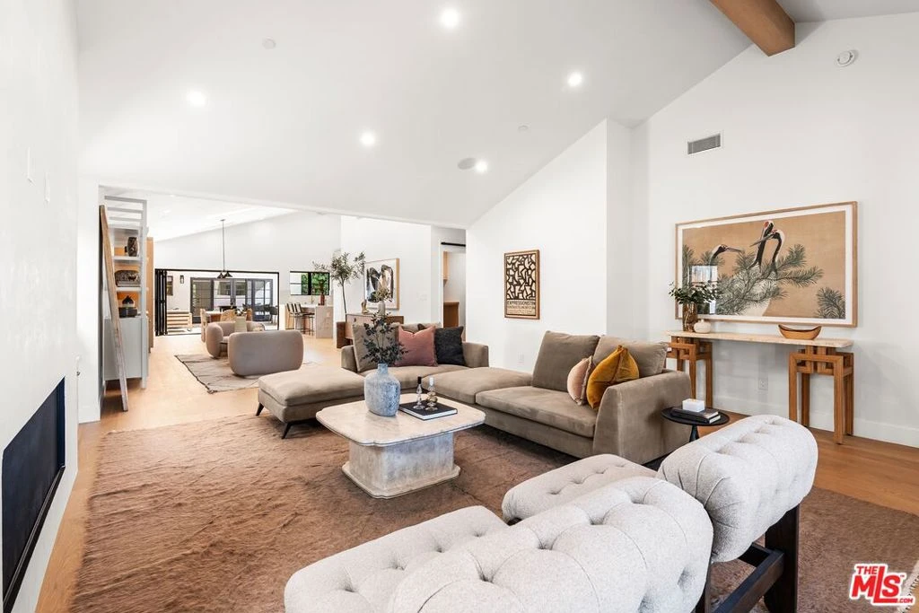 Presenting 12426 Woodgreen Ave, an exceptionally remodeled Mar Vista Hill home expertly crafted by MDI Homes and curated by Joy Margaux Design, where virtually nothing from the original structure remains. From the moment you arrive, you are greeted by striking curb appeal with a metal standing seam roof, white oak siding, and drought-tolerant landscaping with artificial turf and drip irrigation, setting the tone for the refined craftsmanship found throughout.Inside, vaulted ceilings with white oak beams, wide-plank hardwood floors, and skylights with motorized shades fill the home with natural light. The open-concept layout centers around a chef's kitchen featuring honed marble countertops with a dramatic waterfall island, custom white oak cabinetry, and seamless flow through a La Cantina folding door system to a 700 plus square foot Trex deck, perfect for indoor-outdoor living. Two smooth stucco gas fireplaces anchor the family room and primary suite, while a dedicated wine area and custom built-ins add thoughtful functionality. Milgard windows and doors and ample storage enhance both form and function. The property is fully enclosed with an automatic gated entry, offering privacy and security. Completing the offering is a detached ADU with private side gate access, ideal for guests, rental income, or a home office. A rare opportunity to own an exceptionally remodeled, design-driven home in one of Mar Vista Hill's most desirable locations.
