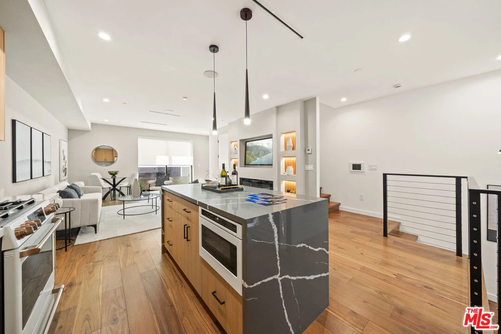 Introducing an exclusive collection of five newly built, gated small-lot residences in the heart of West Hollywood. Each has its own address. This is the ONLY home currently available, offering a rare opportunity to own within this limited enclave. Thoughtfully designed for modern living, this sophisticated three-bedroom residence spans four levels and features a bright, open-concept floor plan with soaring ceilings, recessed lighting, custom flooring, and refined millwork throughout. The designer kitchen showcases premium white-and-gold appliances and sleek finishes. It flows seamlessly into the expansive living area, complete with an electric fireplace perfect for both everyday living and effortless entertaining. The luxurious primary suite serves as a private retreat, featuring a spa-inspired bathroom with a soaking tub, glass-enclosed shower, dual vanities, and an oversized walk-in closet. Enjoy multiple private balconies and terraces, crowned by a stunning rooftop deck with a built-in BBQ and outdoor kitchen ideal for entertaining or unwinding under the stars. Select residences offer sweeping city views, including Downtown LA, the Hollywood Hills, the Hollywood Sign, and Griffith Observatory. Additional highlights include an in-unit washer and dryer, Ring system setup, integrated sound, fire sprinklers, gated entry, and secure garage parking. Located just moments from the vibrant shops, restaurants, and markets of West Hollywood and Hollywood, this home offers unparalleled access to the very best of Los Angeles living. *Select floor plans*; buyers must verify.