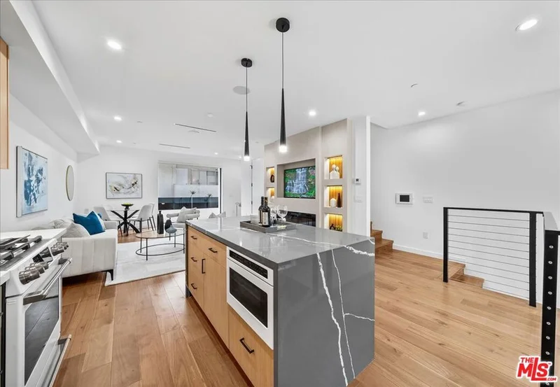 Introducing an exclusive collection of five newly built, gated small-lot residences in the heart of West Hollywoodeach residence with its own separate address, and this is the only one currently available. Thoughtfully designed for modern living, this three-bedroom home spans four levels and showcases a bright, open-concept floor plan with high ceilings, recessed lighting, custom flooring, and refined millwork throughout.The gourmet kitchen features premium white-and-gold appliances, designer finishes, and seamless flow into the spacious living area with an electric fireplaceideal for both everyday living and entertaining. The expansive primary suite offers a true retreat, complete with a spa-inspired bath featuring a soaking tub, glass-enclosed shower, dual vanities, and an oversized walk-in closet.Enjoy private balconies and terraces, plus a spectacular rooftop deck with a built-in BBQ and outdoor kitchen. Select floor plans offer sweeping city views, including Downtown LA, the Hollywood Hills, the Hollywood Sign, and Griffith Observatory an exceptional setting for entertaining or relaxing under the stars (buyer to verify).Additional highlights include an in-unit washer and dryer, pre-wired security system, integrated sound system, fire sprinklers, gated entry, and secure garage parking. A rare opportunity to own a brand-new, contemporary residence just moments from the vibrant shops, restaurants, and markets of West Hollywood and Hollywood, with convenient access to the best of Los Angeles. *Select floor plans*; buyers must verify.